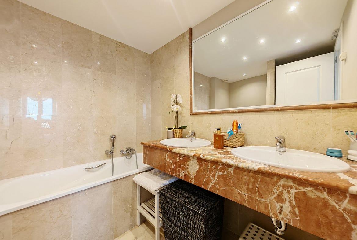 Ground Floor Apartment for sale in , Mijas Costa with 3 bedrooms, 2 bathrooms, 1 on suite bathroom and 1 toilet, with communal swimming pool and private garage (1 parking spaces). Regarding property dimensions, it has 109.7 m² built and 42.19 m² terrace. Has the following facilities mountainside, amenities near, transport near, air conditioning, fully fitted kitchen, fireplace, marble floors, double glazing, guest toilet, sea view, country view, covered terrace, fitted wardrobes, gated community, lift, garden view, panoramic view, street view, close to children playground, close to golf, balcony, excellent condition and close to schools.