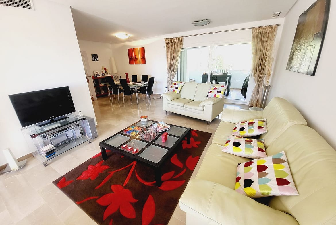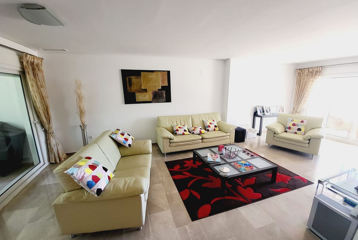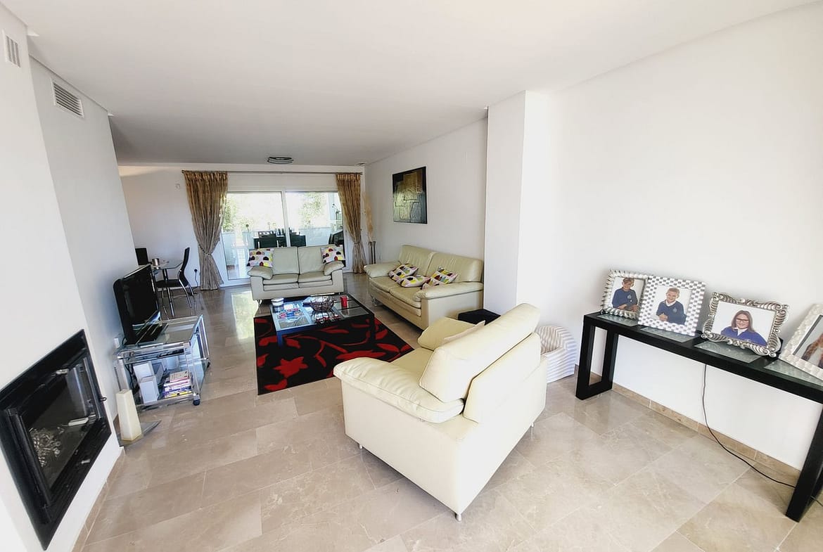 ABSOLUTELY STUNNING LUXURY APARTMENT WITH SUPERB VIEWS. SITUATED IN A MUCH SOUGHT AFTER COMMUNITY WITH A SUNNY ORIENTATION, THIS PROPERTY IS MUCH LARGER THAN AVERAGE AND HAS BEEN FINISHED TO VERY HIGH STANDARDS THROUGHOUT. THE FEATURES INCLUDE: CREAM MARBLE FLOORING, MARBLE BATHROOMS, UPVC DOUBLE GLAZING, CENTRALISED HOT AND COLD A/C, FITTED WARDROBES, SUN BLINDS AND A WOOD BURNING STOVE. THE APARTMENT HAS 3 GOOD SIZED TERRACES – ALL OF WHICH ENJOY EXCELLENT VIEWS AND PROVIDE AMPLE OUTDOOR SPACE FOR DINING, RELAXING OR ENTERTAINING. THE PRICE INCLUDES UNDERGROUND PARKING FOR TWO CARS AND A STORAGE ROOM. THE PROPERTY HAS BEEN OWNED FROM NEW BY THE CURRENT OWNERS AND IS TASTEFULLY PRESENTED IN IMMACULATE CONDITION. CONVENIENTLY LOCATED WITHIN A THREE MINUTE WALK TO A SUPERMARKET, BARS, RESTAURANTS, BUS SERVICE AND LESS THAN A 5 MINUTE DRIVE TO LA CALA. THE NEAREST BEACH IS A 10 MINUTE WALK. THIS PROPERTY REALLY NEEDS TO BE SEEN TO APPRECIATE THE EXTREMELY SPACIOUS AND LIGHT LIVING AREAS AS WELL AS THE GENEROUS OUTSIDE SPACES THAT MAKE THE APARTMENT IDEAL AS A LUXURY SECOND HOME OR PERMANENT RESIDENCE.