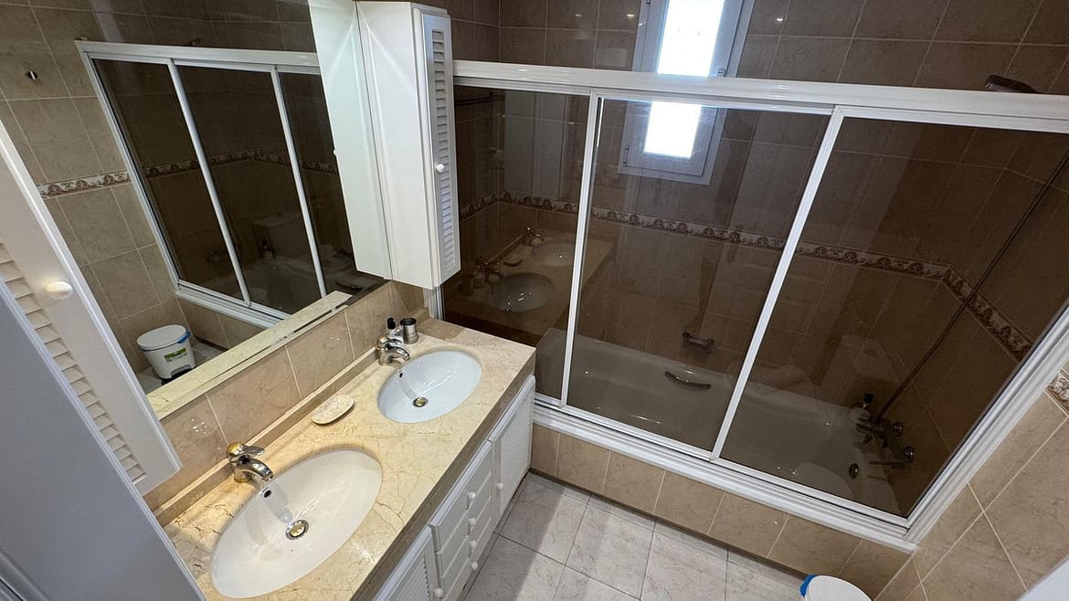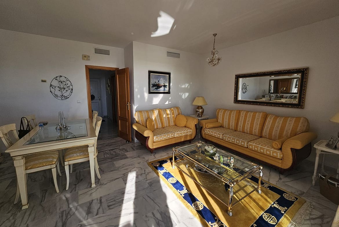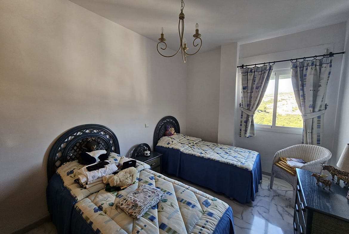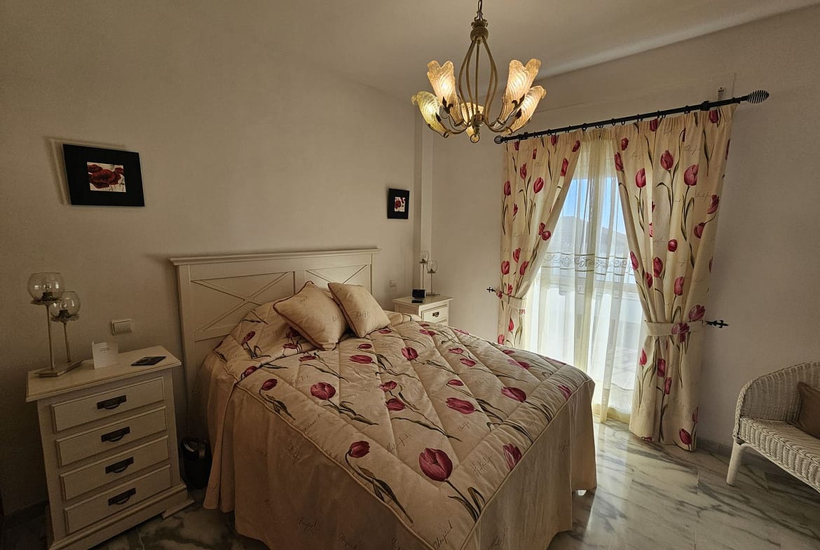 Suitable for a movie star, this three bedroom tastefully decorated apartment has been designed by the builder of this gated complex with three bedroom with plenty of living space. The property comprises: Entrance hall with guest cloakroom leading to an enormous lounge with dining area leading onto the terrace, very spacious fully fitted luxury kitchen, main bedroom suite with access to the terrace, fitted dressing area leading to a sumptuous bathroom with all round shower jets, jacuzzi bath and a purpose built sauna, two further double bedrooms both with en-suite bathrooms and guest toilet. Communal swimming pool for the use of this apartment and only four others.