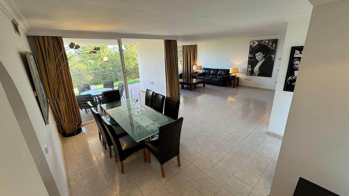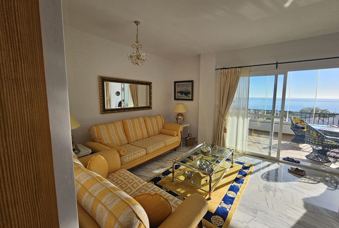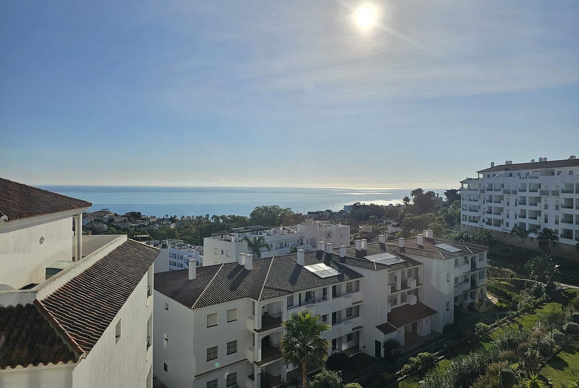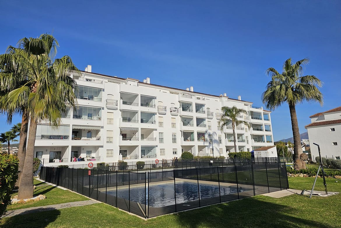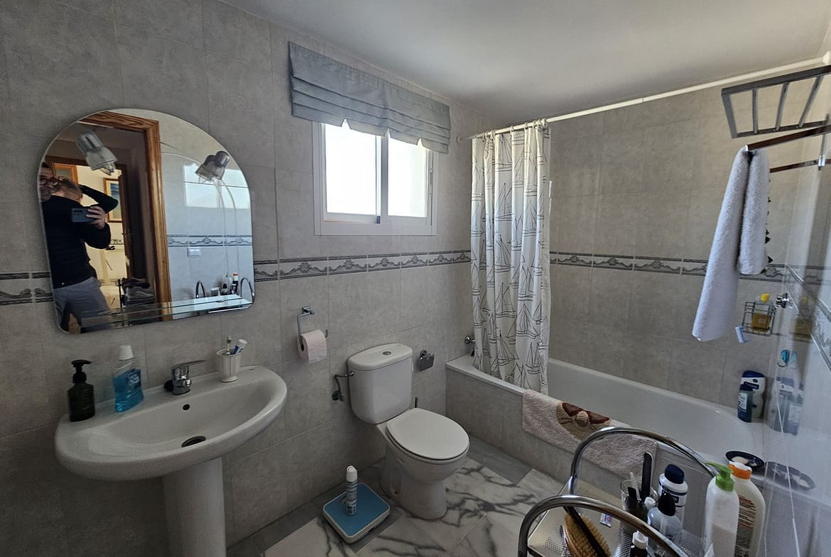 Suitable for a movie star, this three bedroom tastefully decorated apartment has been designed by the builder of this gated complex with three bedroom with plenty of living space. The property comprises: Entrance hall with guest cloakroom leading to an enormous lounge with dining area leading onto the terrace, very spacious fully fitted luxury kitchen, main bedroom suite with access to the terrace, fitted dressing area leading to a sumptuous bathroom with all round shower jets, jacuzzi bath and a purpose built sauna, two further double bedrooms both with en-suite bathrooms and guest toilet. Communal swimming pool for the use of this apartment and only four others.