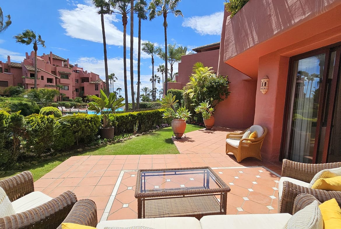 If you are after a relaxed, high-end lifestyle by the sea, this fully renovated beachfront apartment may be just the thing. Tucked away in one of Estepona’s most desirable spots—the New Golden Mile—this place blends modern comfort with a touch of elegance, all right on the Mediterranean.