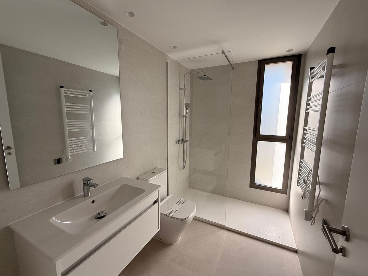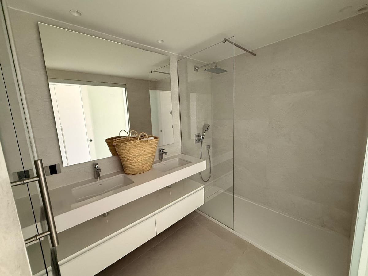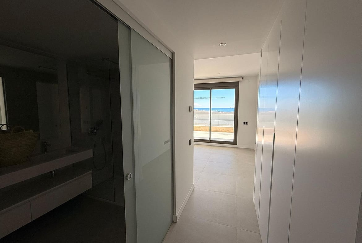 All bedrooms include fully equipped built-in wardrobes, as well as electric blinds for added comfort. The master bedroom also opens onto a private terrace enclosed by glass curtains.