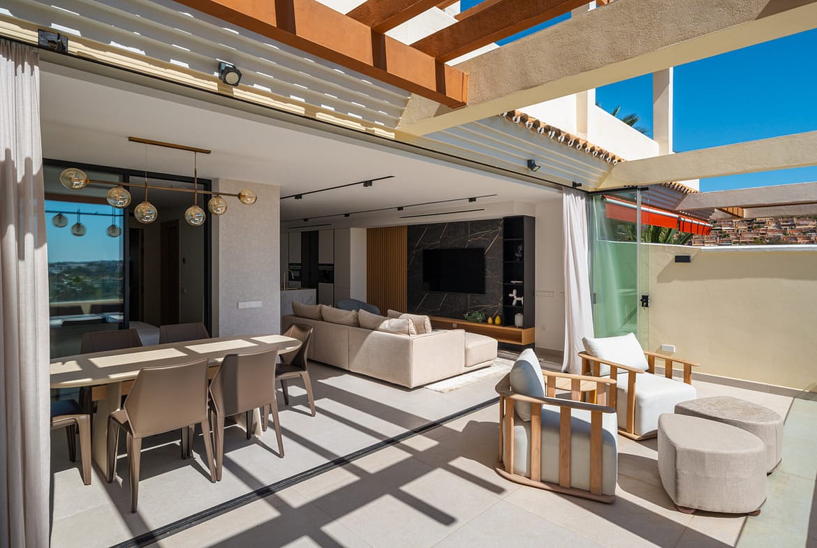 Nueva Andalucía also caters to an active lifestyle. Golfers can enjoy courses such as Los Arqueros Golf & Country Club, while paddle and tennis enthusiasts have the Nueva Alcántara Paddle and Tennis Club close at hand. The neighborhood combines modern Mediterranean-style apartments and villas, giving it a welcoming and community-focused character.