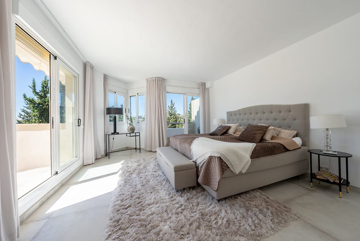 This stunning fully renovated three-bedroom duplex penthouse is located in the prestigious Fuente de Aloha complex in Nueva Andalucía, just minutes from Puerto Banús and surrounded by the best golf courses in Marbella’s Golf Valley.