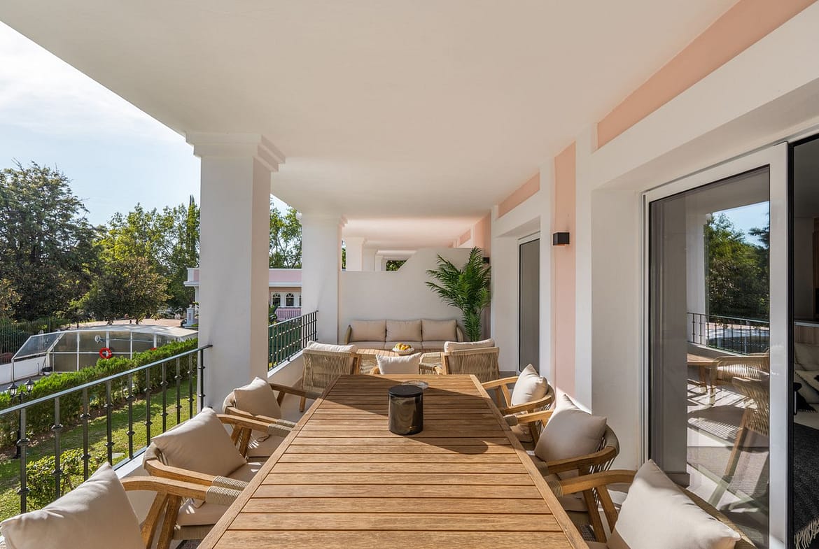 This is a refined duplex penthouse set within the gated community of Aloha Gardens in Nueva Andalucía. This property presents a well-balanced combination of modern design and a prime location in one of Marbella’s most established areas. The main floor is designed for harmonious indoor-outdoor living, featuring an open-plan living and dining space that flows onto a spacious terrace—ideal for relaxing or entertaining. A sleek kitchen layout and a guest toilet add convenience to this level. Upstairs, the night area offers three well-proportioned bedrooms. The primary suite enjoys a large wardrobe area, an en-suite bathroom, and direct access to a private terrace. From here, a staircase leads to the rooftop solarium, offering a quiet retreat with open-air potential. Two additional bedrooms share a well-appointed bathroom, ensuring both privacy and comfort for guests or family members. Located in the heart of Nueva Andalucía, it benefits from the amenities of Aloha Gardens, including three communal swimming pools. Just beyond the gates, residents enjoy proximity to some of Marbella’s best restaurants, boutique shops, tennis clubs, and golf courses. This is an exceptional opportunity to acquire a fully renovated penthouse in a highly regarded residential enclave.