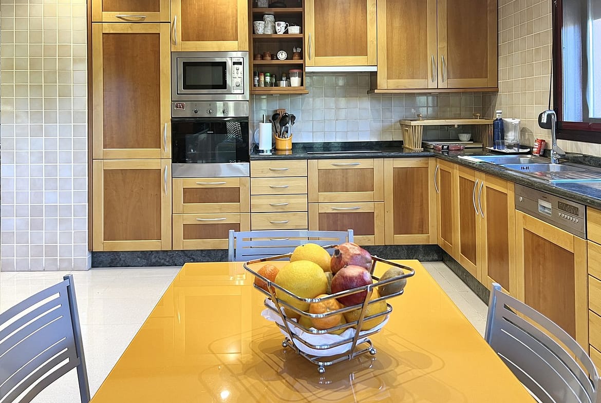 The east facing property offers spacious accommodation distributed over two floors comprising of, on the entrance floor, there is a large combined lounge and dining room with a fireplace and direct access to the corner terrace. The fully equipped kitchen is top of the range and finished to the highest quality with large wooden windows that give a wonderful view of the mountains, with breakfast area and a laundry room. The master bedroom en suite with a hydro-massage bath and a dressing room also have direct access to the terrace and a guest cloakroom. On the upper floor, there are two bedrooms en suite, one of them with a dressing room, the two bedrooms have access to the large solarium terrace on the corner.