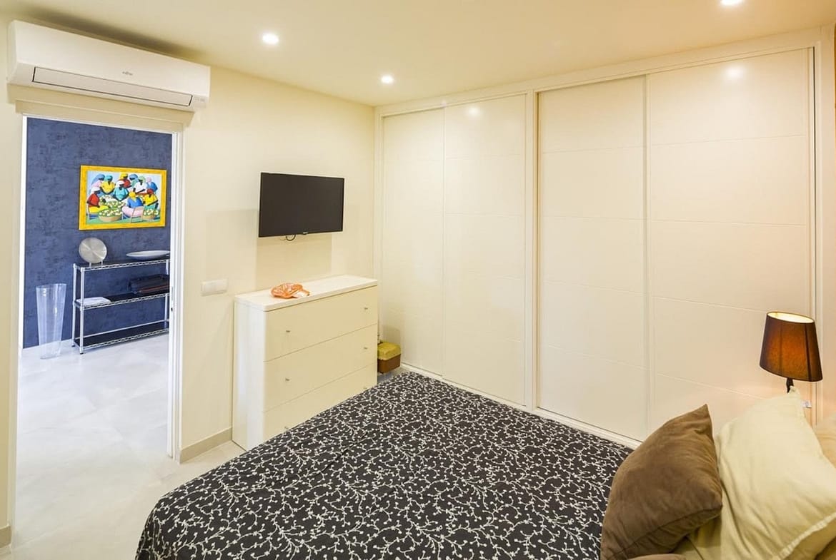 The property boasts a generous built area of 77m², recently renovated to a high standard and beautifully presented. The interior layout includes a spacious living room and dining room, complemented by an open plan, fully fitted and equipped kitchen. The guest rooms provides additional flexibility, while fitted wardrobes offer ample storage throughout. Double glazing, electric blinds, and air conditioning contribute to comfort and energy efficiency, and security features such as security entrance, and security shutters providing peace of mind.