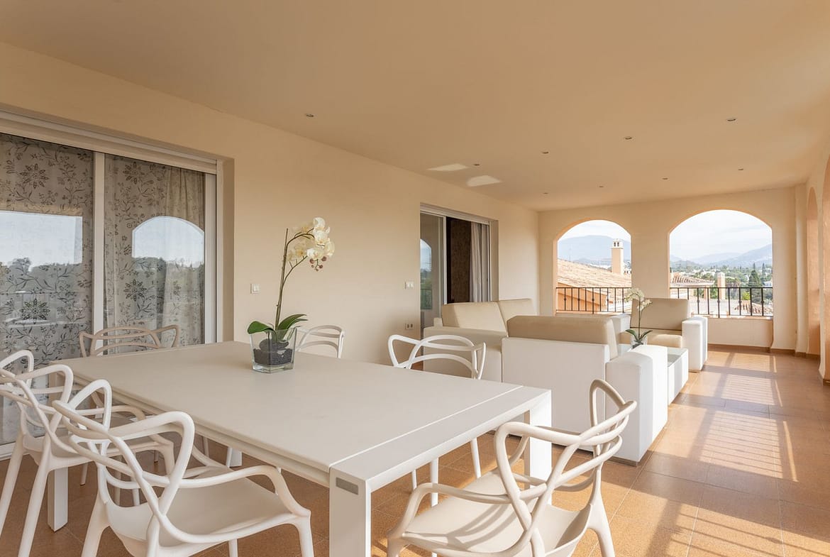 The property consists of large living-dining room with direct access to a large covered terrace of approximately 40m2 overlooking the gardens, pool and the area of nueva Andalucía, fully fitted American kitchen, master bedroom en-suite with direct access to the main terrace and two further guest bedrooms, with two bathrooms (one of them en-suite) with direct access to another large terrace with mountain views.