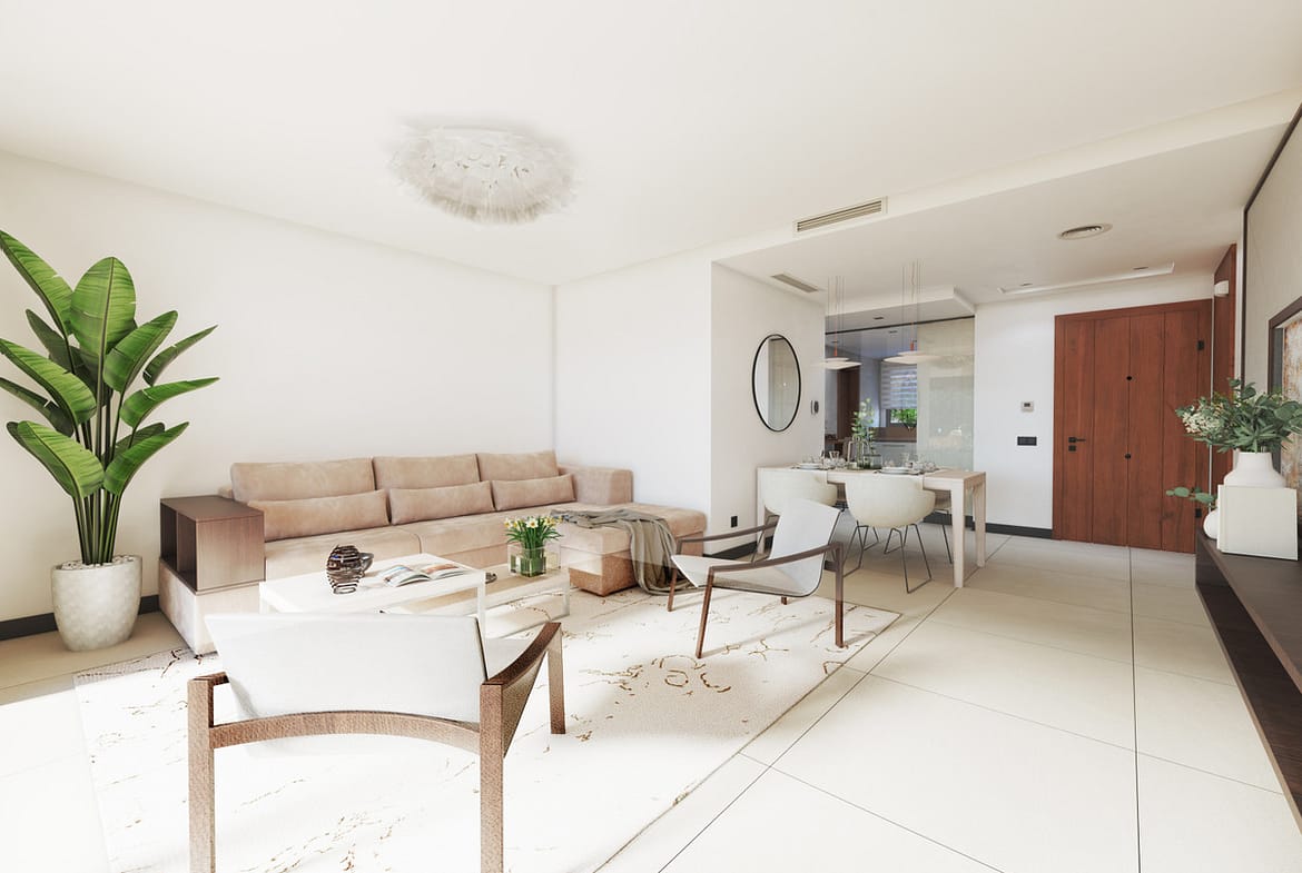 This new development comprises 98 apartments distributed throughout several three storey buildings in contemporary Mediterranean style. The 2 and 3 bedroom apartments and the wonderful penthouses and duplex homes are surrounded by carefully landscaped gardens and four communal pools.