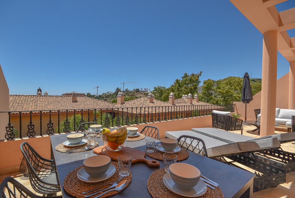 We present this elegant duplex penthouse located in the prestigious Vista Real complex, one of the most exclusive and sought-after areas of Nueva Andalucía, Marbella. Surrounded by the finest golf courses and only 5 minutes by car from Puerto Banús and 3 minutes from Aloha, this home combines contemporary design, comfort, and stunning views of the Mediterranean Sea.