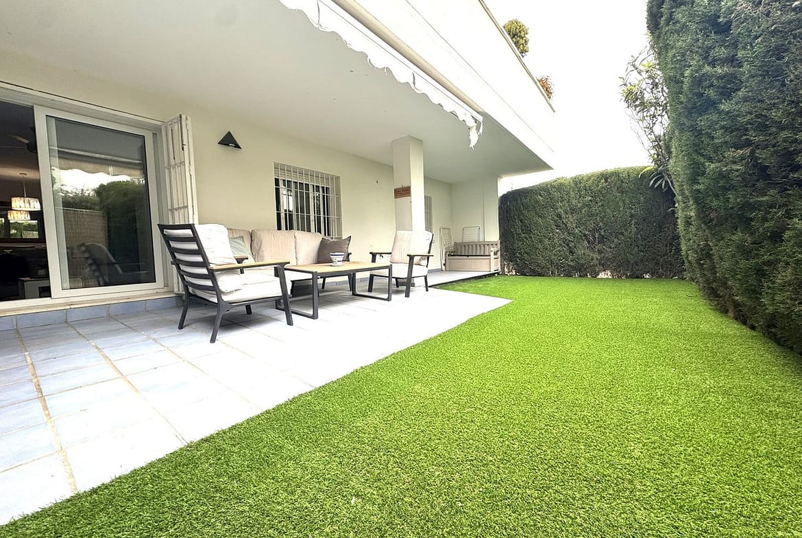 Beautiful and spacious 3-bedroom ground floor apartment located in Nueva Andalucía, Marbella. Set within a well-maintained and highly desirable community, the property is within walking distance of local amenities and the renowned Real Club de Pádel. The apartment comprises a spacious and bright living room, an upgraded fully fitted kitchen, and three large double bedrooms. The master bedroom features an en-suite bathroom, while the two additional bedrooms share a well-appointed family bathroom. South-facing, the property enjoys sunshine throughout the day, with a generous terrace and private garden that offers direct access to the communal areas. The development boasts two swimming pools, perfect for enjoying Marbella’s exceptional climate year-round.