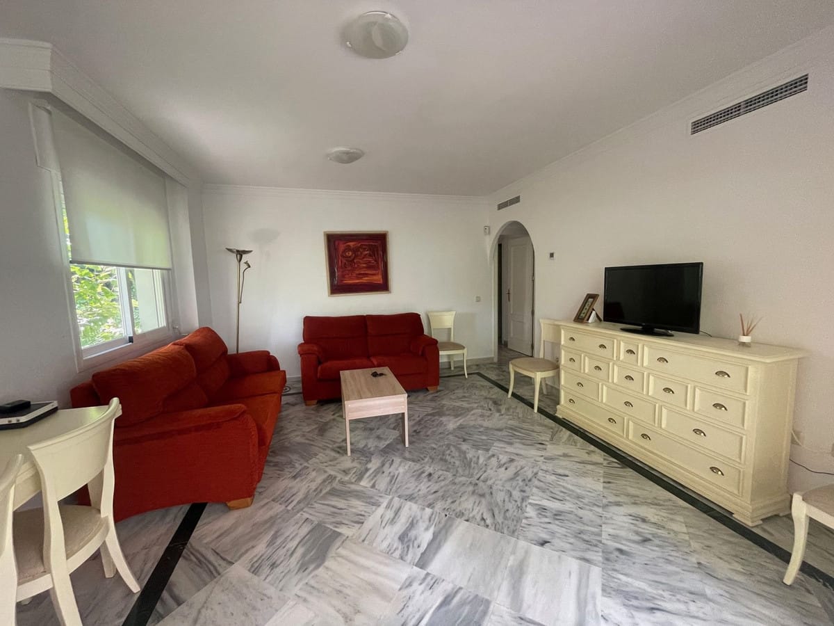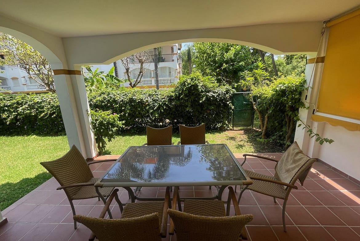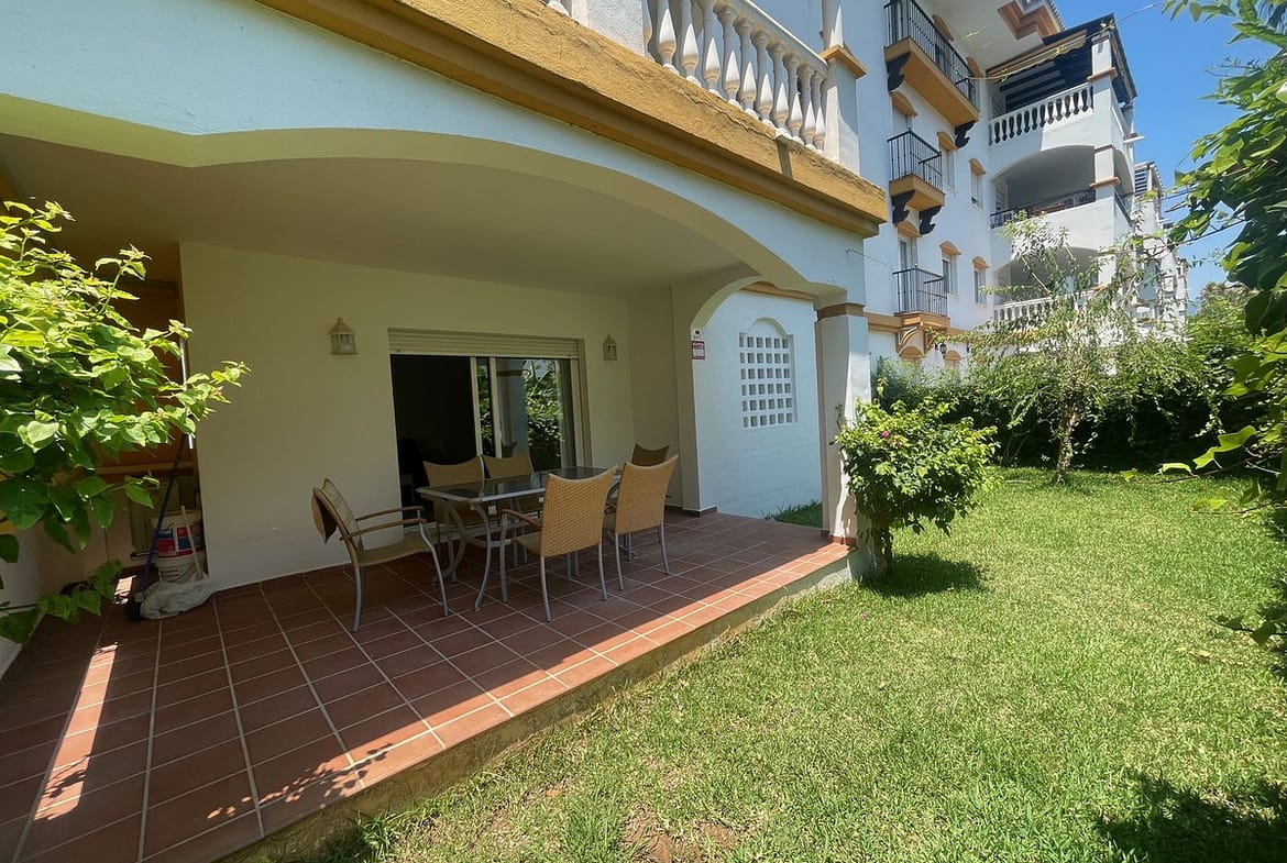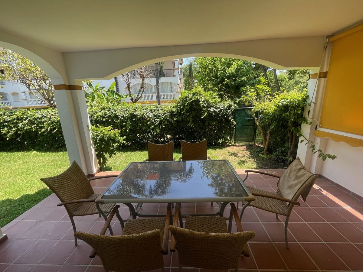 Located just 400 meters from the beautiful beach, this magnificent ground-floor apartment combines comfort, style, and a privileged location in one of Marbella's most sought-after areas. The private urbanization offers 24-hour security, lush tropical gardens, two mountain-view swimming pools, six padel tennis courts, a children's playground, and a very popular restaurant, creating an ideal environment for enjoying time with family or friends.