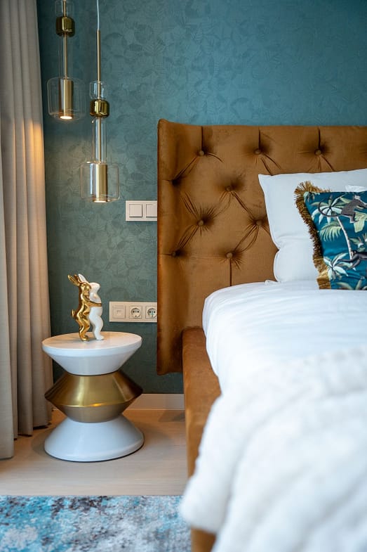 The apartment offers three spacious bedrooms and 2 bathrooms, including a master suite with a walk-in wardrobe and direct access to the terrace, and a guest toilet. Finished in a warm and natural palette, the interiors combine textured walls, oak elements and stone details to create a refined yet welcoming atmosphere.