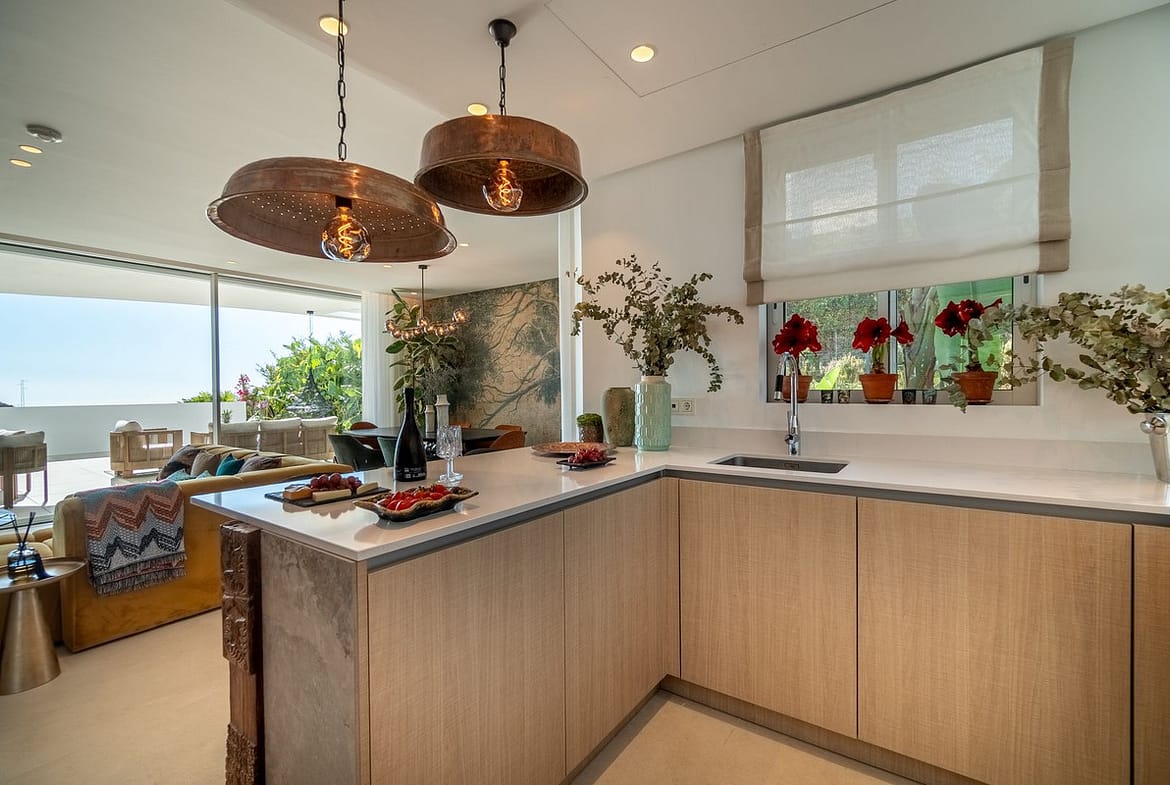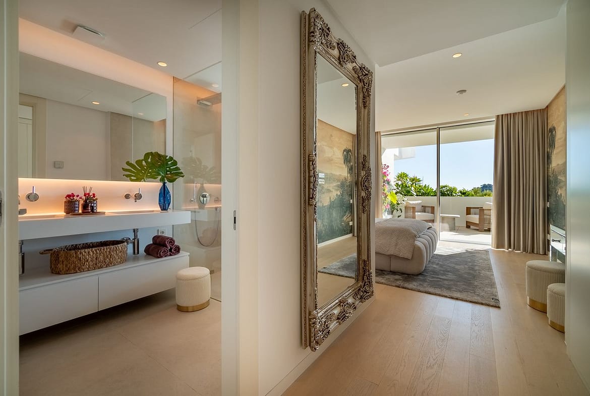 A bright open-plan living and dining area with floor-to-ceiling windows connects seamlessly to a large south-west orientation facing terrace of over 62 m². From here, you can enjoy spectacular views of the Mediterranean Sea, Gibraltar and even the African coastline.