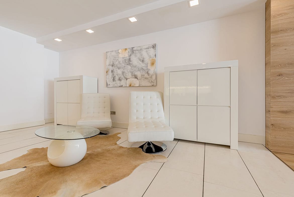 Completely renovated in 2014 with top modern design and with high quality materials, this property offers numerous extras such as a full domotic system that controls the electric blinds, the cold / hot air conditionning system, the underfloor heating and the many led lightings throughout the whole apartment; a music system with integrated speakers in the ceiling in each bedroom; Hansgrohe fittings and Porcelanosa ceramic tiles in the bathrooms; a full shower room/toilet on the living area level, as well as a storage/utility room.