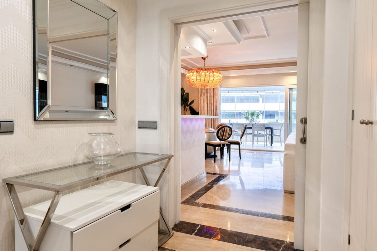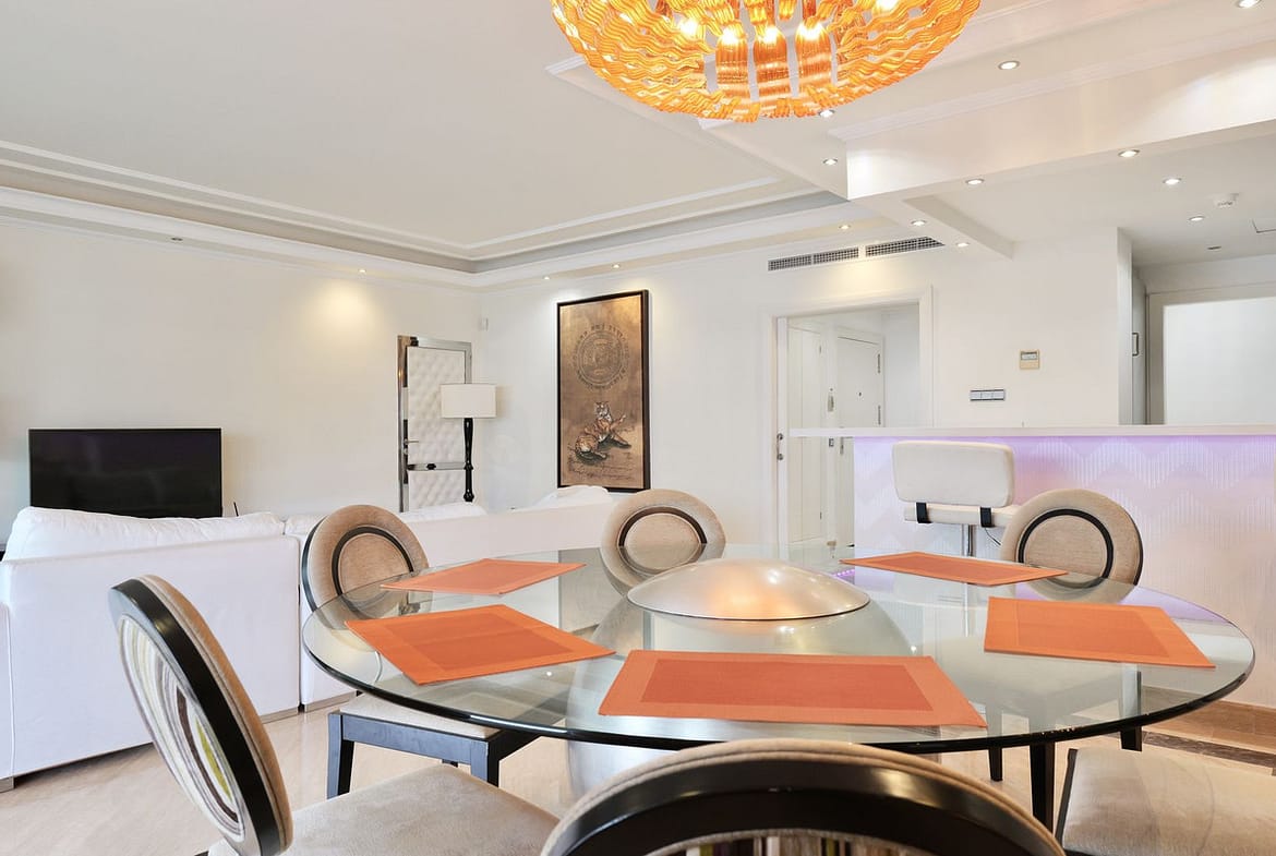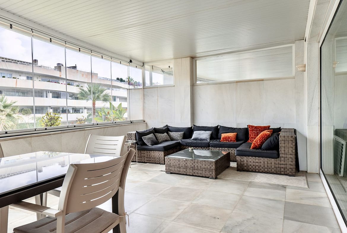 The apartment is fully furnished and features a fully fitted kitchen, a bright living and dining area, and a covered terrace ideal for year-round outdoor use. All three bedrooms are generously sized and include fitted wardrobes, while the bathrooms are well appointed for everyday comfort.