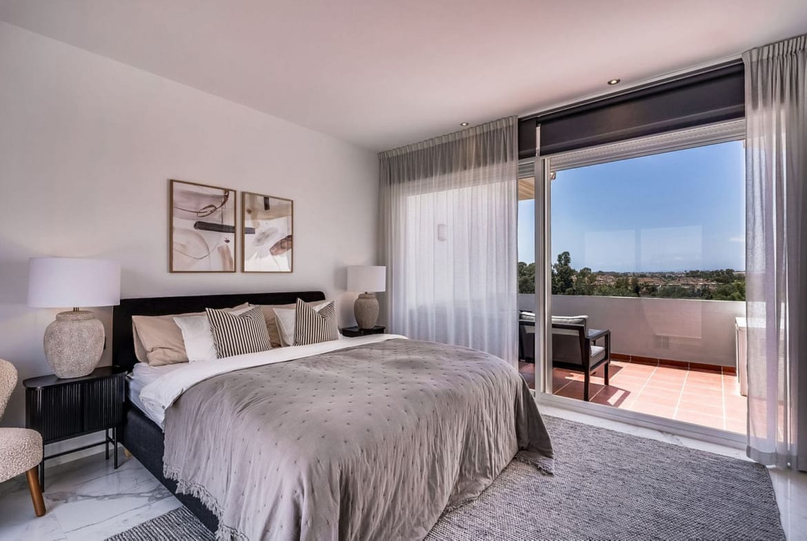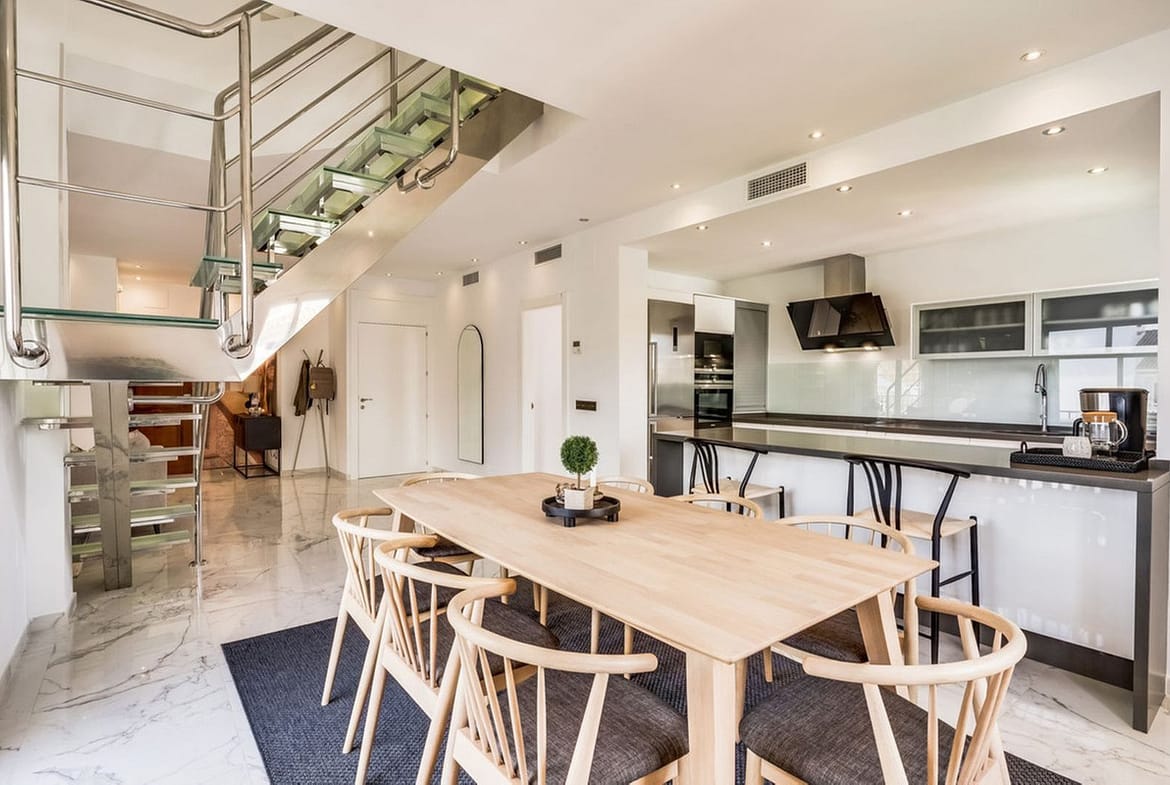 As a duplex, this home affords breathtaking panoramas from both floors and orientations, from East to West, providing the interiors with natural light throughout the day. A generously sized terrace invites relaxation with its inviting chill-out area adorned with plush sofas and captivating vistas.