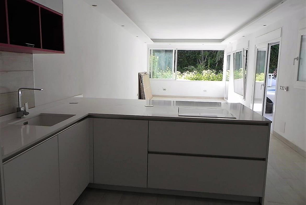 Completely refurbished 3 bed 3 bath ground floor apartment beachside Puerto Banus. This property comes with underfloor heating throughout, new Porcelanosa bathrooms, new modern kitchen, 2 terraces both leading onto the pool area. Gated complex situated opposite the Guadalpin hotel. Parking inside with some steps leading to the property. Quiet urbanisation with easy access to the beach.