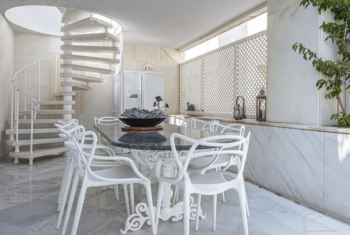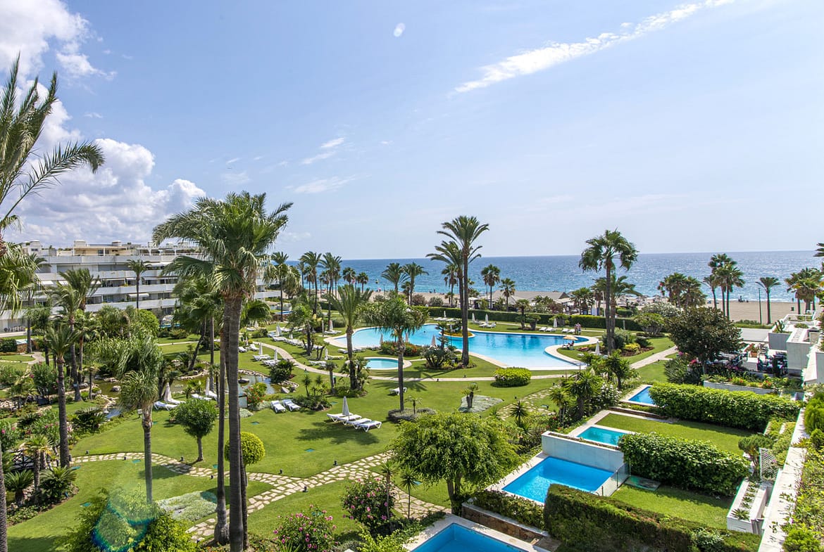Magnificent front line beach duplex penthouse apartment, situated within walking distance of Puerto Banús and its beautiful Marina. The property enjoys fabulous views over the landscaped gardens the Mediterraneas Sea and La Concha mountain. Located in one of the best communities around Puerto Banús offering 24 hours gated security, indoor heated swimming pool, outdoor pool, restaurant and social club. The apartment offers an entrance hall, 4 bedrooms, 4 bathrooms en suite, elegant and spacious drawing room with dining area leading out to a large terrace with stunning lateral sea and gardens views. The upper floor enjoys a huge solarium with seating area, bathroom, kitchen and private swimming pool. Further the property includes one parking space in the underground garage. This property represents a great opportunity to purchase an ideal holliday or permanent residence.