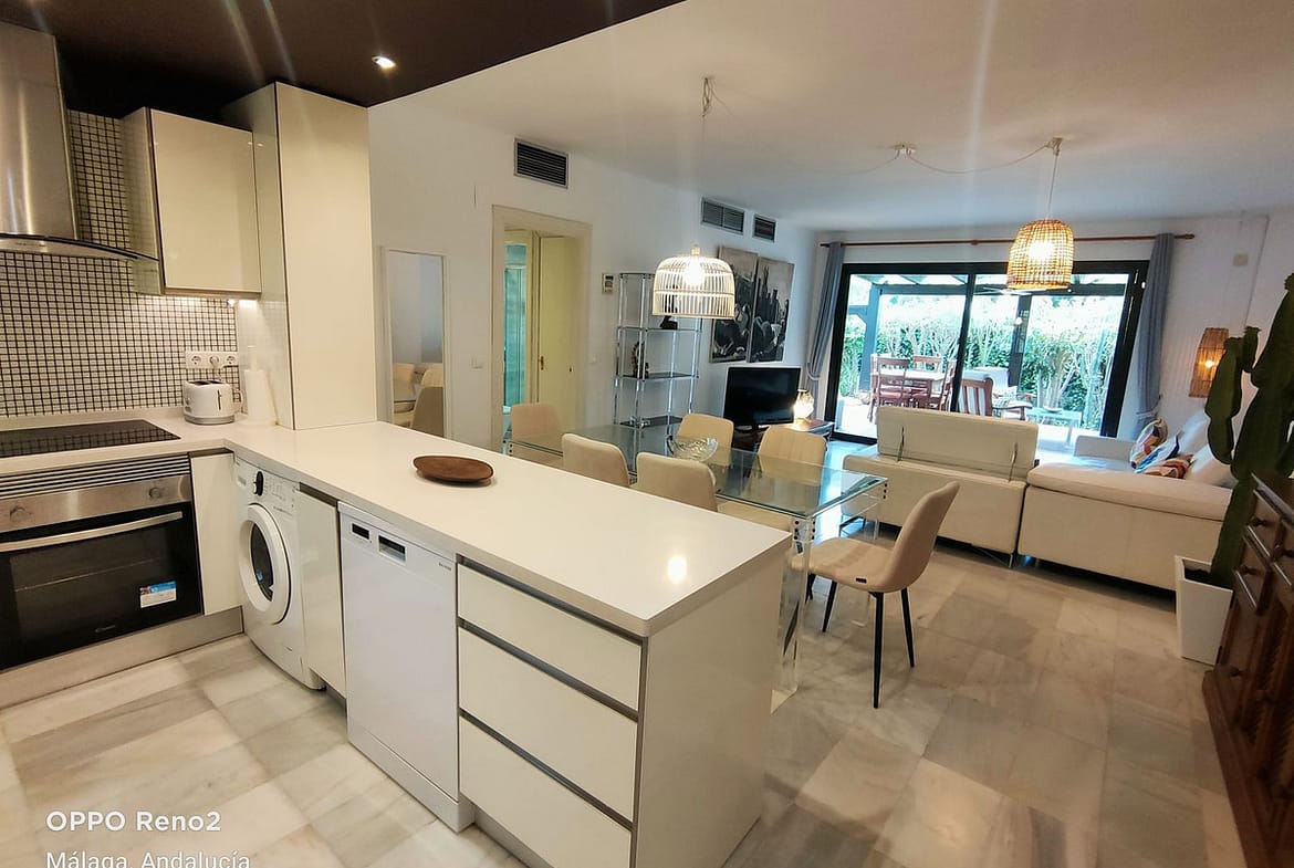 Large private garden, 3 bedrooms + 2 bathrooms, the en-suite bathroom has a bathtub and hydromassage, beautiful kitchen open to the living room, with views of its own private garden for maximum privacy