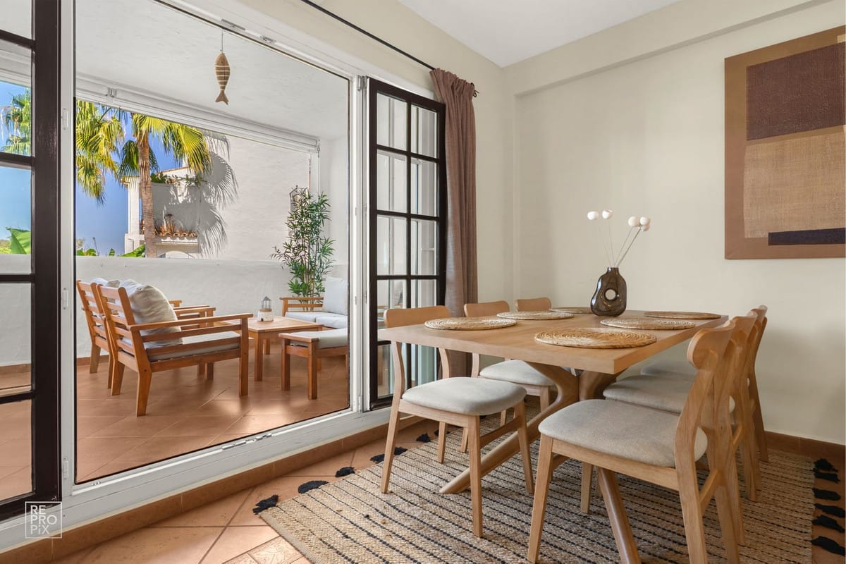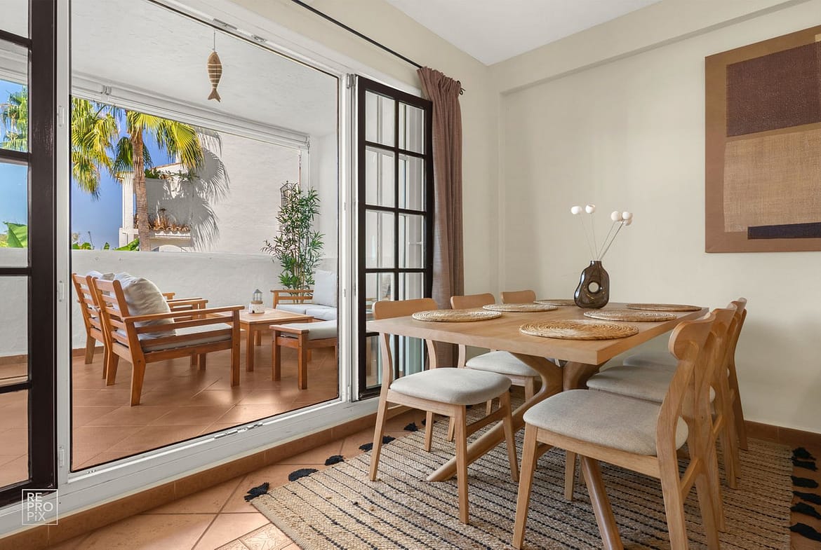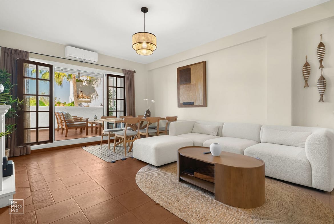 Stylish, high-end three-bedroom apartment for up to 6 guests, featuring 3 double beds, two bathrooms, and a terrace with a dining set and grill. Located in a gated, 24/7 secured complex with a pool, direct beach access, and a private beach bar with its own pool. Just renovated, this exclusive retreat offers an unmatched stay in the heart of Puerto Banús.
