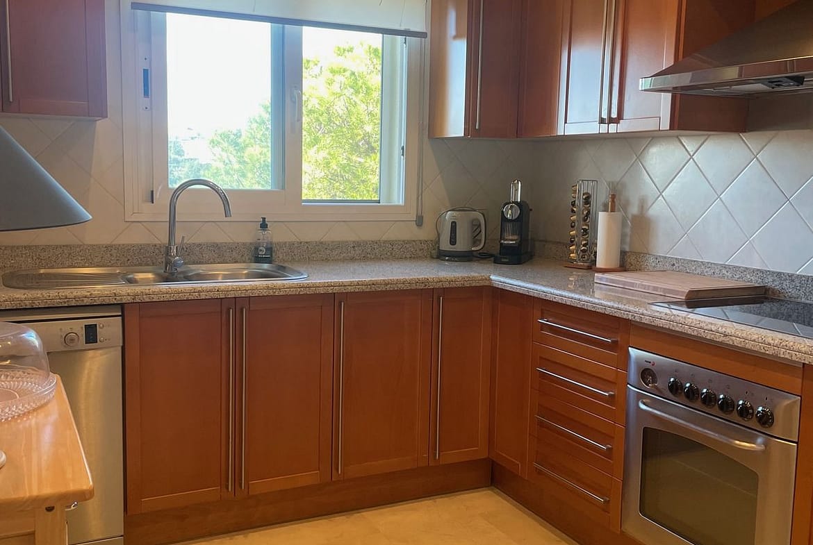 The property has also access to the private garden at the corner side of the apartment (30m2), to enjoy peace and quiet right by the golf course.