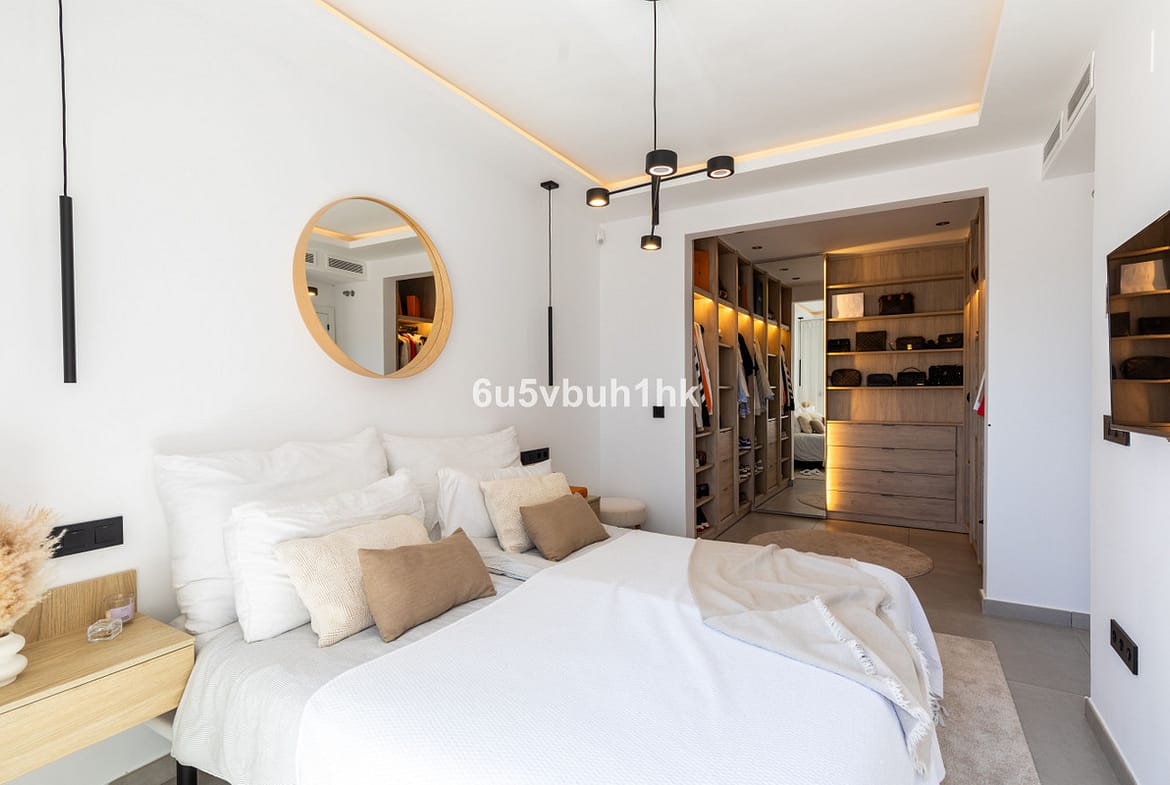 Welcome to discover this exclusive penthouse, completely renovated and tastefully decorated. This bright and spacious apartment features three large bedrooms and two bathrooms, all equipped with underfloor heating. The master bedroom has a spacious walk-in closet and an en-suite bathroom with a Finnish sauna, from which you can enjoy stunning sea views. Additionally, the master bedroom has direct access to a terrace with an inflatable jacuzzi, providing an unparalleled relaxation experience.