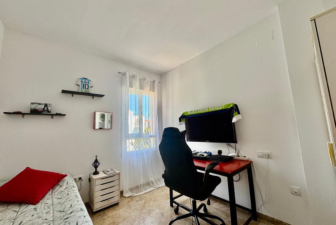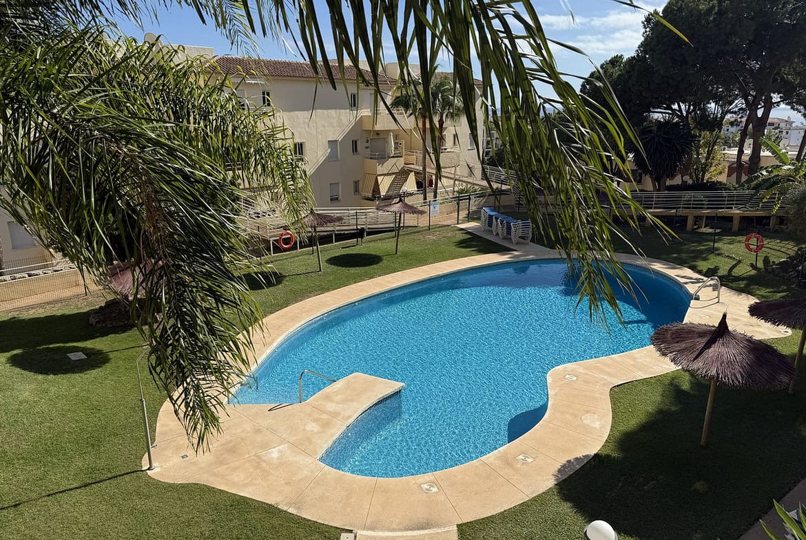 The apartment comprises of hallway, lounge, modern fully fitted kitchen, 3 double bedrooms, bathroom and good sized terrace with glass curtains, allowing for use of this space in all weathers, overlooking pool and gardens. In addition, hot and cold air conditioning and fully furnished! Ready to move in!! Lift or stair access to the underground carparking area (space available for purchase) and the storeroom, which is included in the price.