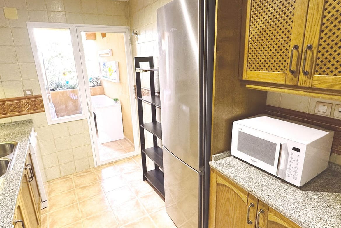 The apartment stands out for being completely exterior-facing and bright thanks to its large double-glazed windows equipped with mosquito nets. Its optimal layout includes three bedrooms with double built-in wardrobes; two elegant bathrooms (one en suite); a fully fitted kitchen equipped with an oven and ceramic hob; and a spacious, versatile living room perfect for enjoying both social and family time.