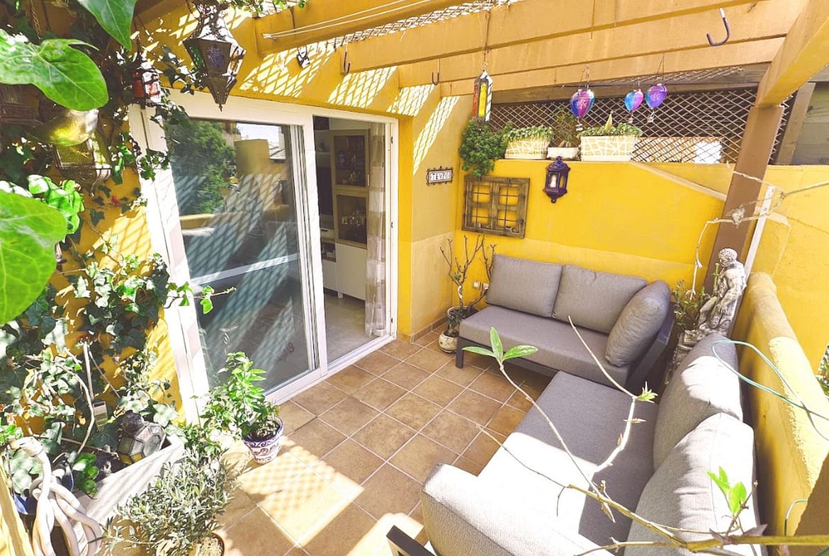 From the living room and master bedroom, you'll have direct access to a charming southwest-facing terrace, perfect for soaking up the sun for much of the day. Your outdoor space is further enhanced by a pergola partially covered with climbing plants and an awning recently installed two years ago.