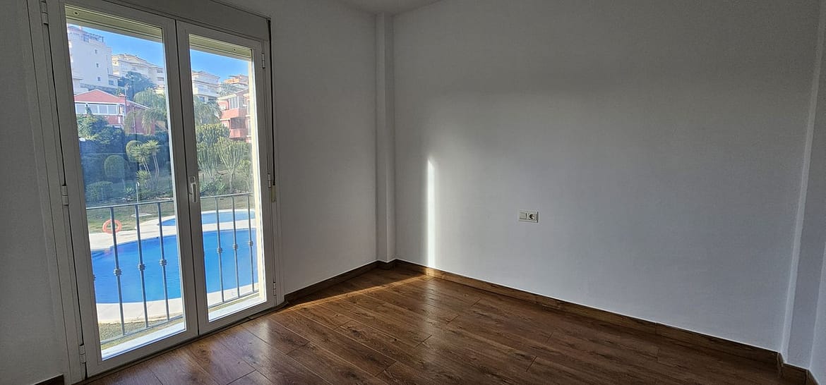 Located in Riviera del Sol, next to numerous golf courses, less than 10 minutes from Fuengirola and 15 minutes from Marbella. This first-floor corner apartment (no elevator) features a large living room with a terrace, a fully renovated and furnished open-plan kitchen with appliances, three bedrooms with built-in wardrobes, and two bathrooms, one of which is en-suite.