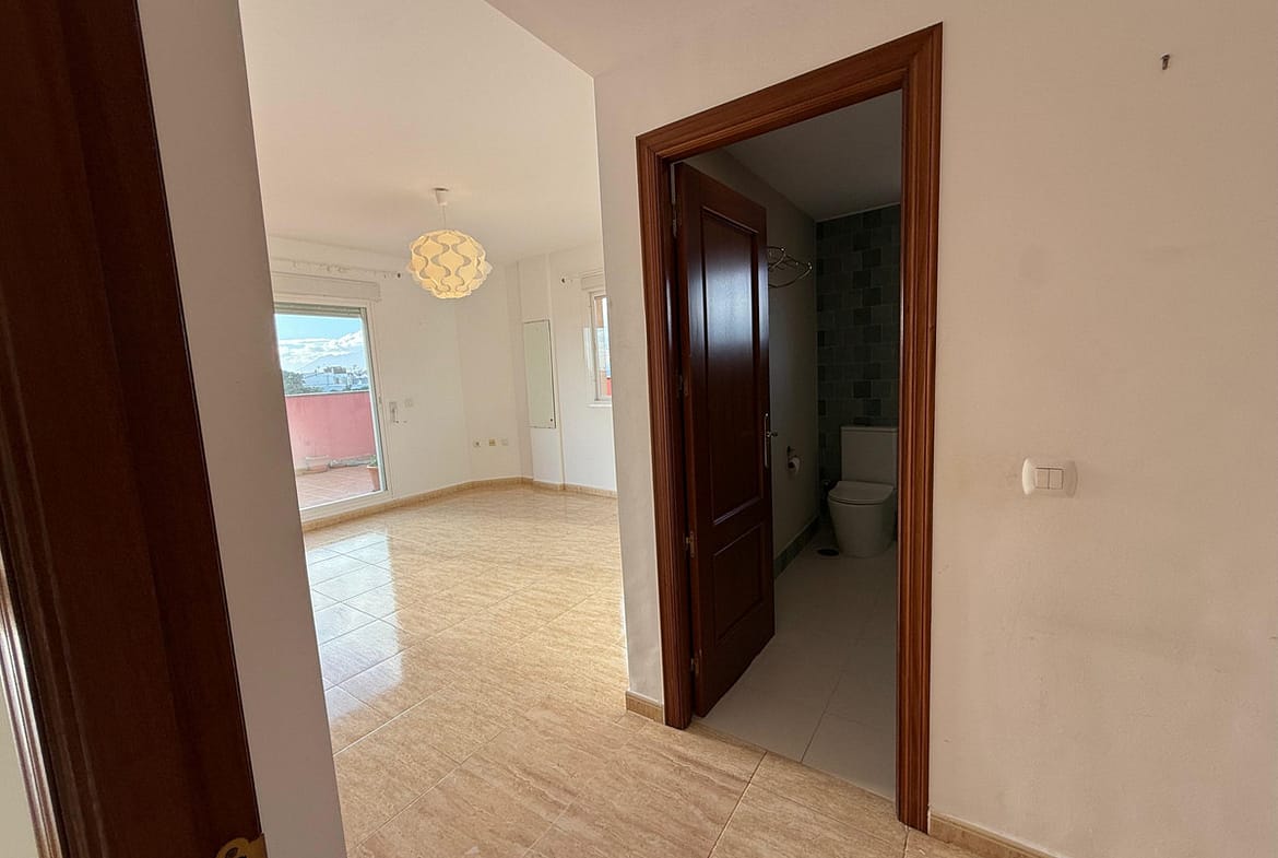 A standout feature of the property is the large private terrace, which wraps around the apartment and provides open views over the town and towards the surrounding mountains. This outdoor space offers significant potential to create an attractive chill-out or dining area, enhancing the appeal of the property once renovated.