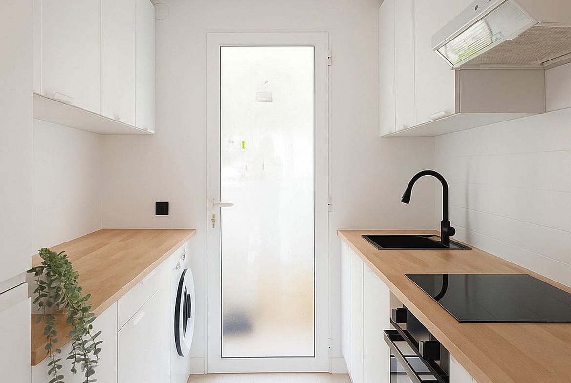 Modern Kitchen: Fully equipped with high-end appliances and a dedicated laundry area for everyday ease.