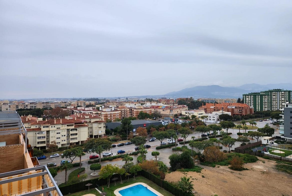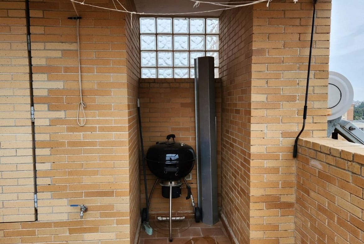 Going up the stairs, we reach the 8th floor of the building, where there is a bright, spacious solarium with incredible views over all of Málaga — even the sea can be seen widely. This floor also includes a storage room where the control panel for the solar panels is located.