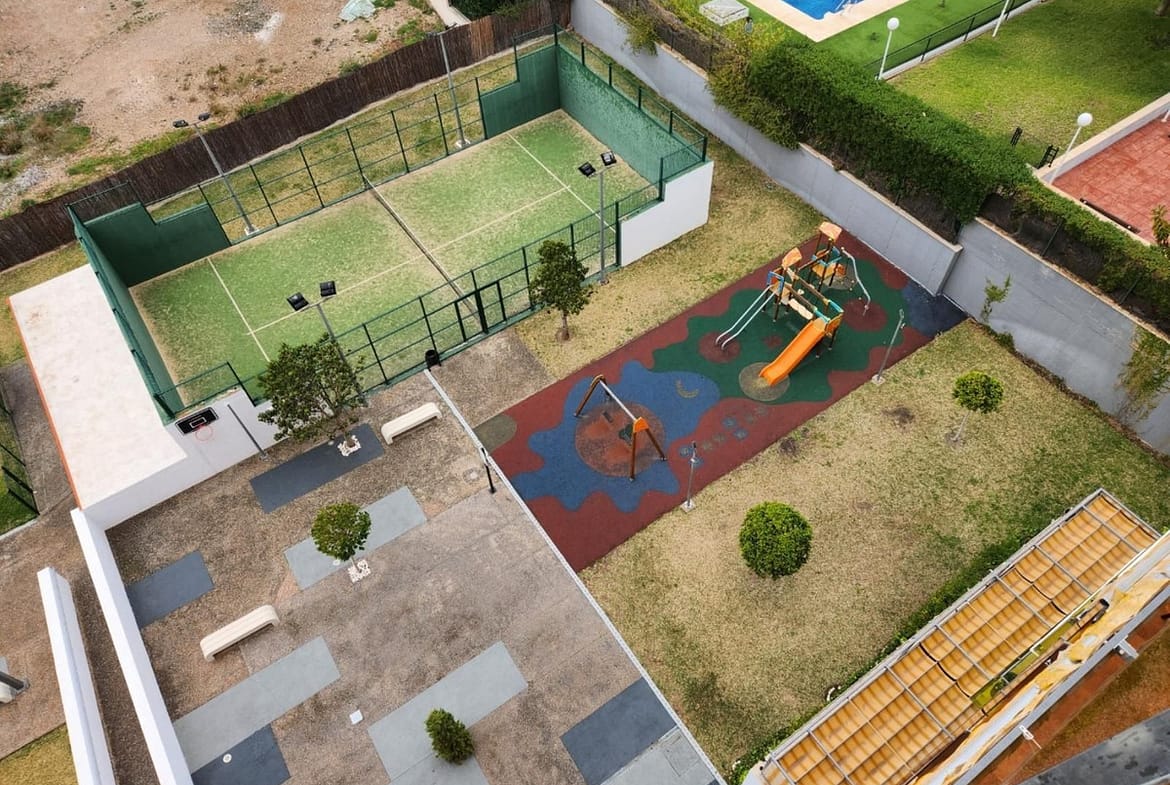 The residential complex offers spaces designed for the enjoyment of the whole family: a large swimming pool for adults and another for children, well-kept gardens, concierge service, a paddle tennis court, and a children’s playground, making this the perfect environment to live in.