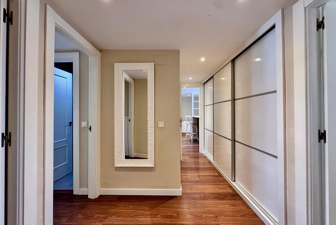 Hallway with large built-in wardrobes