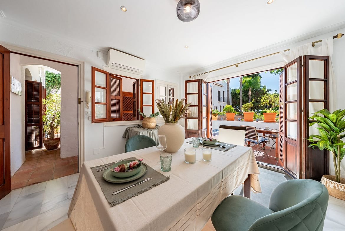 This property's unique advantage is that it holds a one of a kind position within the Urbanisation layout, based in the original first phase which is often often cited as the most beautiful of all. The terrace, as does the living room and dining area looks out upon the sweeping view of the Plaza, with its avenue of majestic, soaring palm trees and the Alhambra inspired fountains and water ways which lead to the acclimatised pool and beautiful surrounding greenery.