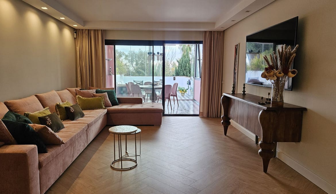 A brand-new, fully renovated apartment with 3 bedrooms and 3 bathrooms, located in the gated community Las Mariposas, in the Puente Romano area, on the Marbella Golden Mile — the warmest and most exclusive location on the Costa del Sol, next to the iconic Puente Romano Beach Resort.