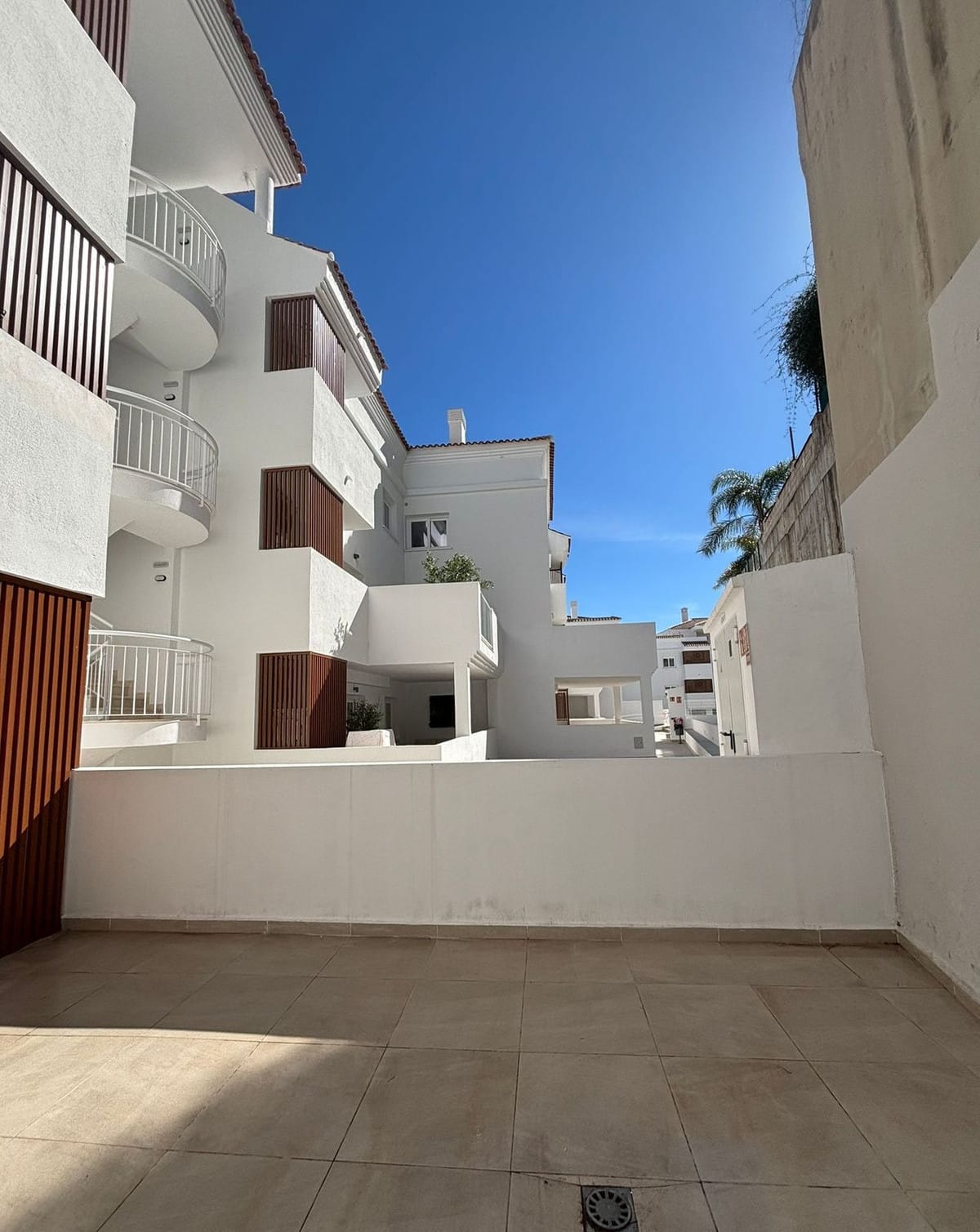 A standout feature of this apartment is its two generous terraces. The east-facing terrace captures the morning sun and enjoys peaceful views towards the mountains, making it the perfect setting for breakfast or a quiet coffee at sunrise. The south-facing terrace overlooks the beautifully maintained communal pool area, benefiting from sunshine throughout the day and providing an inviting space for outdoor dining or unwinding in the warm Costa del Sol climate.