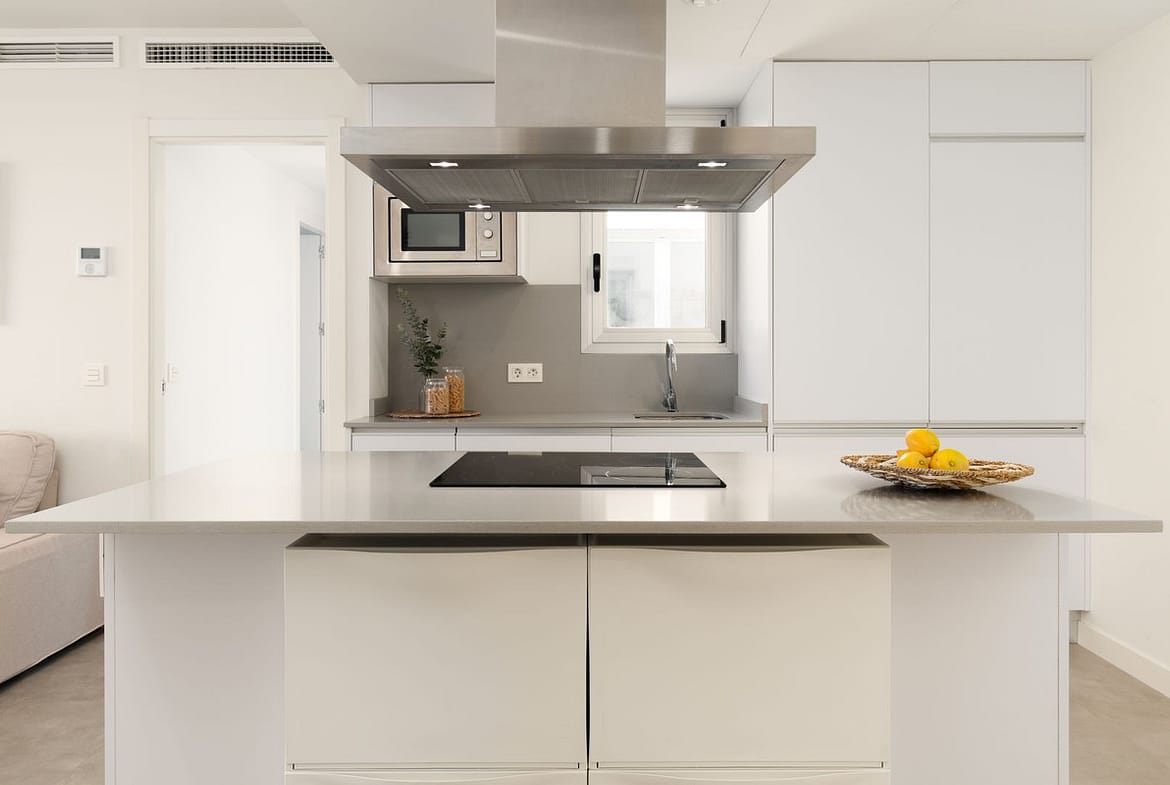 Open-plan kitchen connected to the living room. Spacious west facing afternoon/evening sun terrace with access from the living room and two bedrooms. Private rooftop terrace with sun all day with stairs leading up from the main terrace.