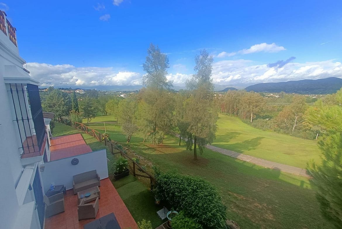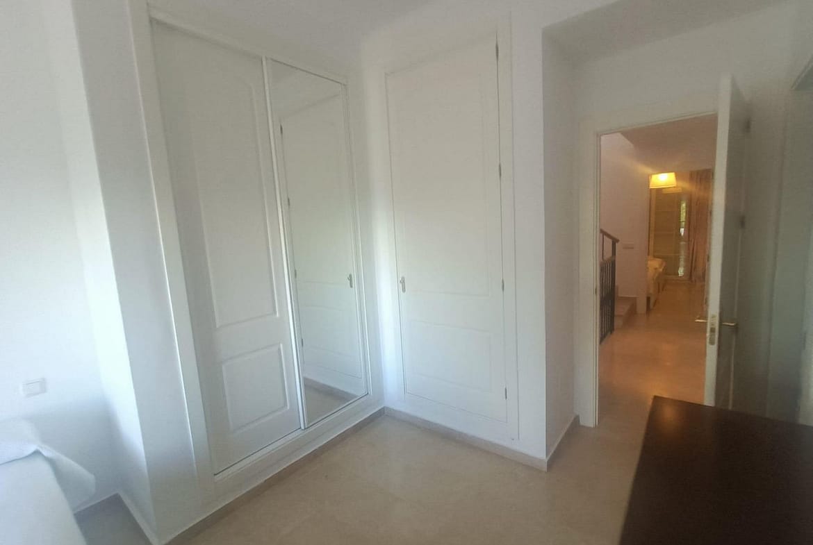 Townhouse for sale in Lauro Golf one of the most prestigious golf courses in Malaga. The property is distributed over three floors. On the ground floor there is a fully equipped kitchen, a toilet, a large living room with a fireplace that leads to a private terrace. On the upper floor there are two en-suite bedrooms and on the top floor there is a third bedroom with a terrace with wonderful views of the golf course. Private parking space and storeroom. Communal gardens a pool. A unique purchase opportunity not to be missed.