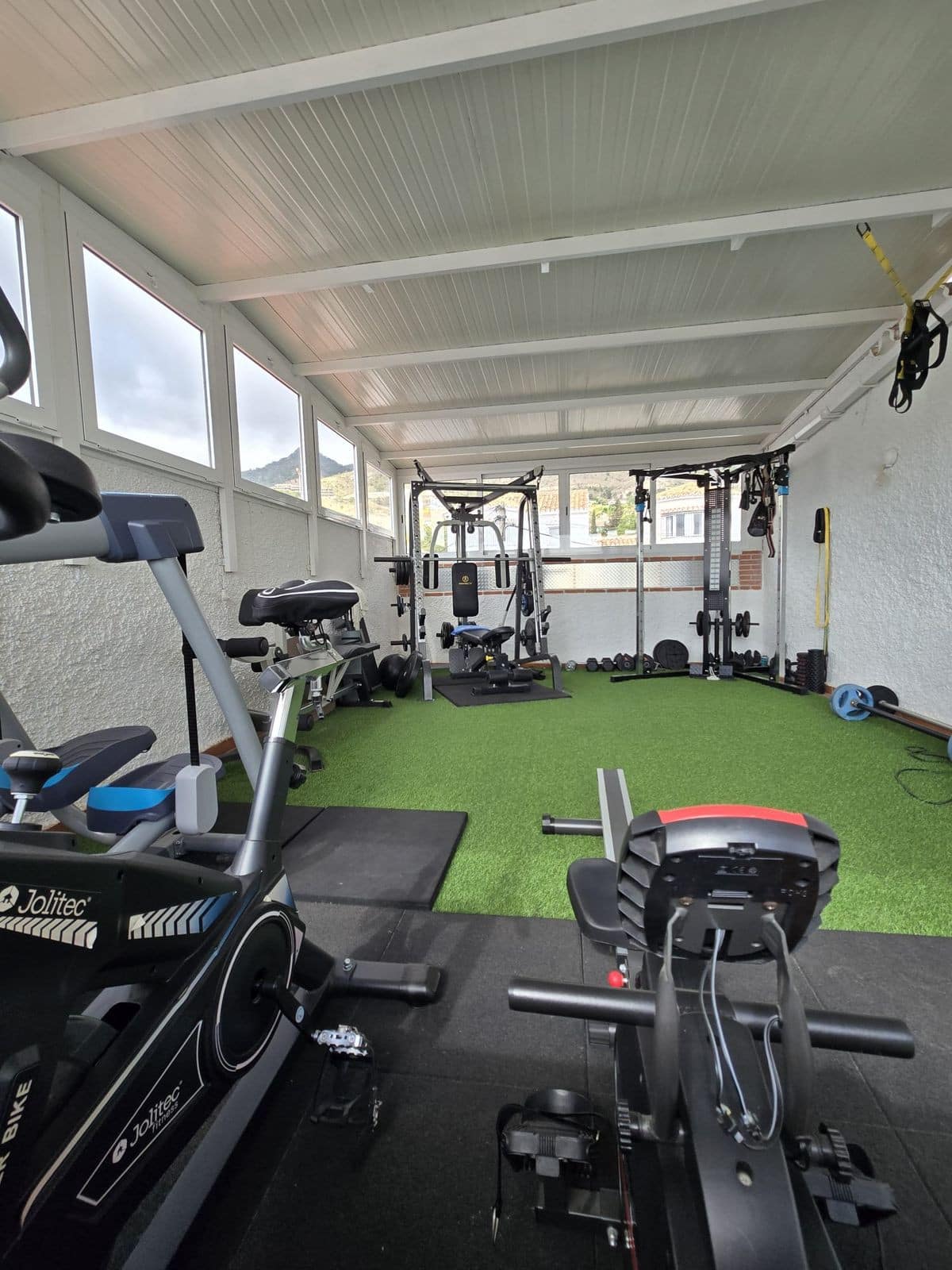 Please be aware there is very limited outside space. Just a small patio. The upstairs terrace is converted to a enclosed gym area.