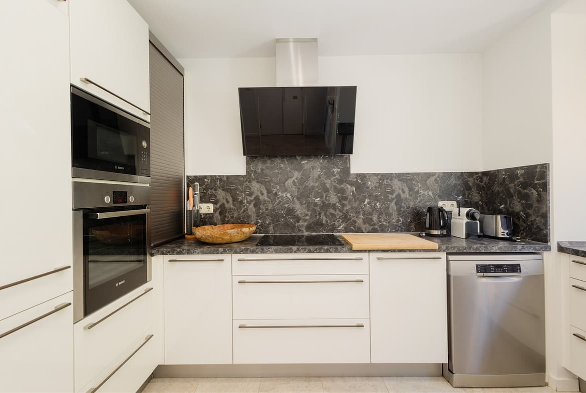 The kitchen is fully equipped with: Nespresso coffee machine, toaster, kettle, fridge, oven and microwave, it is also fully equipped with all kinds of kitchen utensils, plates, cutlery, glasses, wine glasses, champagne glasses, etc.