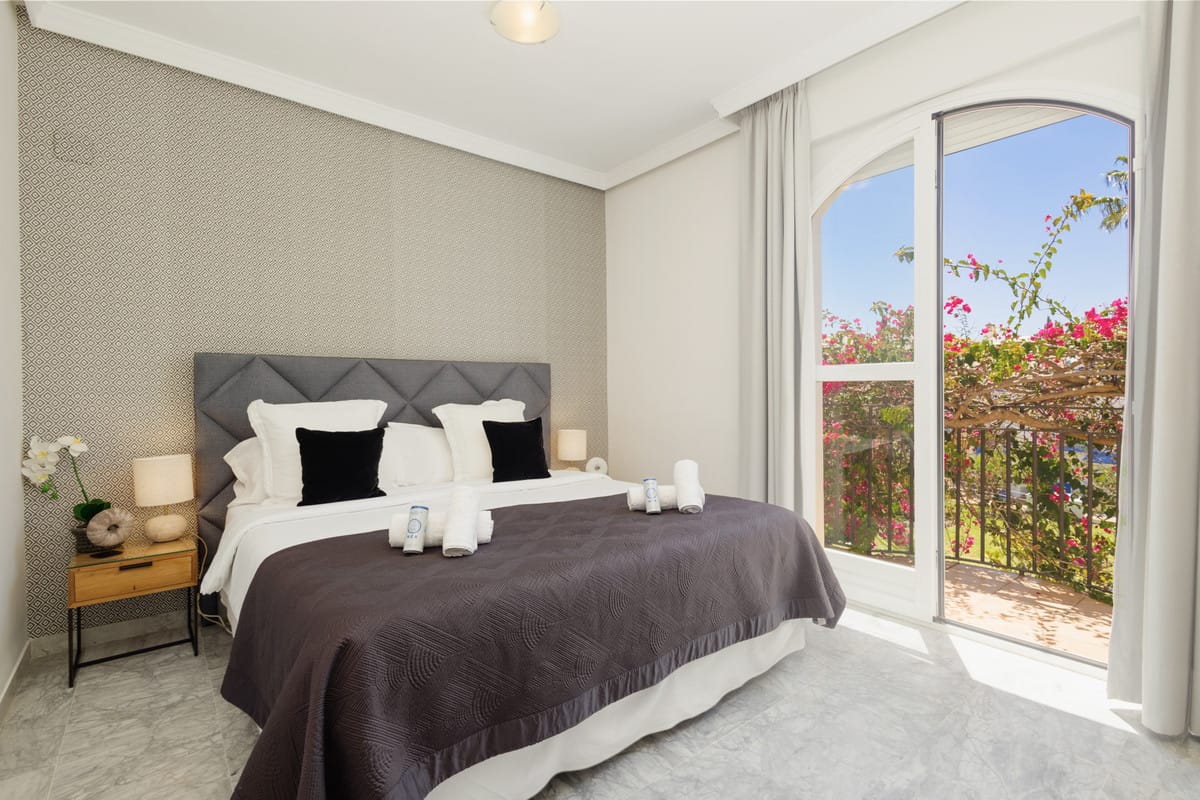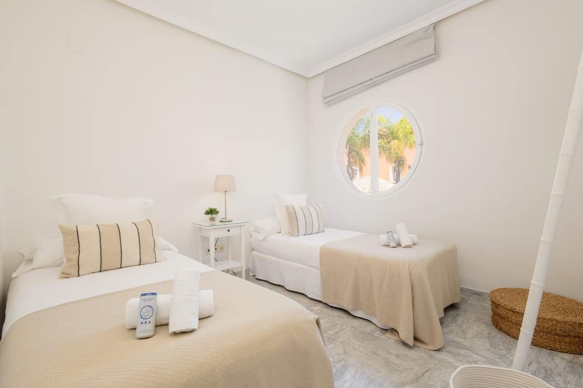 The holiday home in Las Dunas is located in the prestigious area of Bahia de Marbella, just 5 minutes' drive from the centre of Marbella and the old town and 12 minutes' drive from the famous Puerto Banus, where you will find luxury shops and popular nightclubs. The beach is less than a minute's walk away, where you can find several beach restaurants within a few minutes' walk. Malaga airport is 40 minutes away. The nearest supermarket is 5 minutes away and the large shopping centre La Cañada is also only 5 minutes away by car.