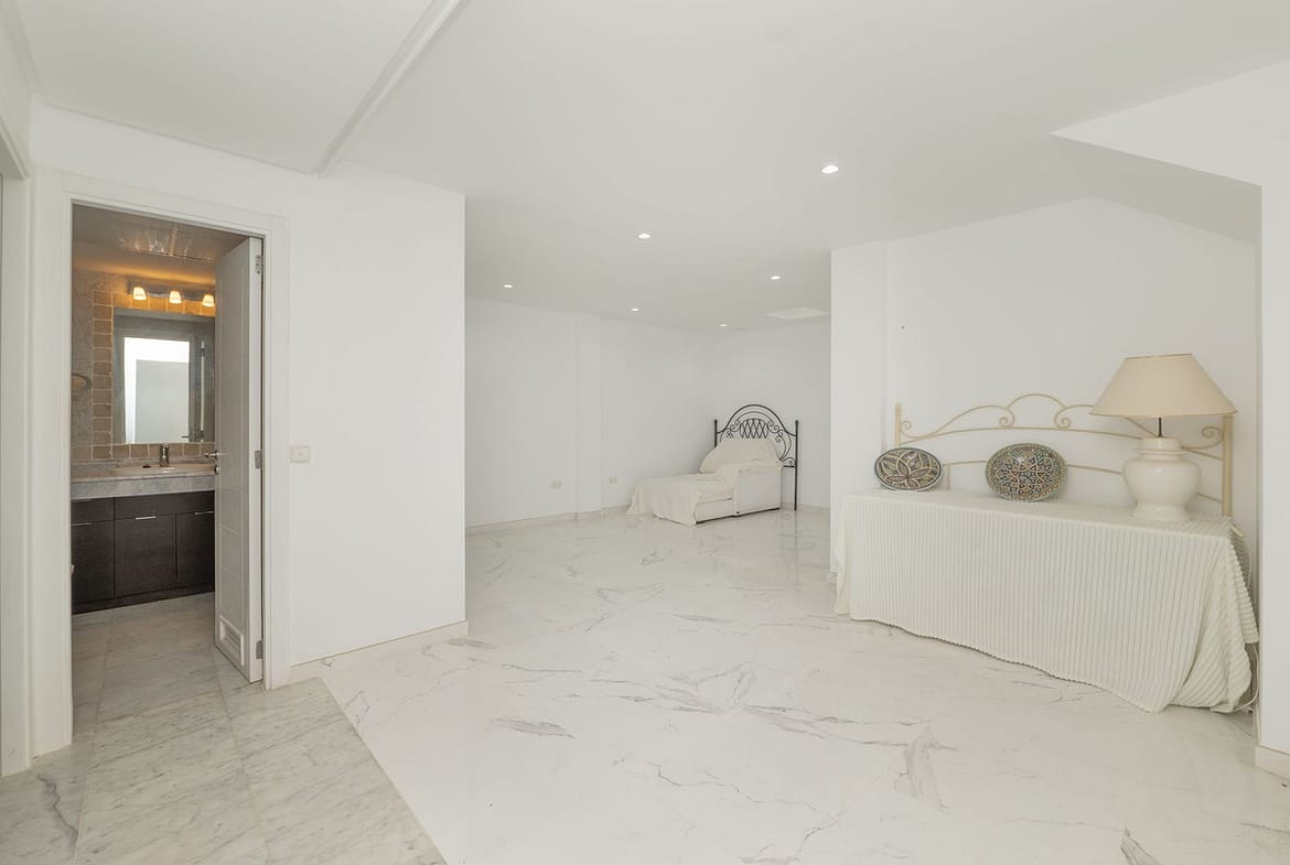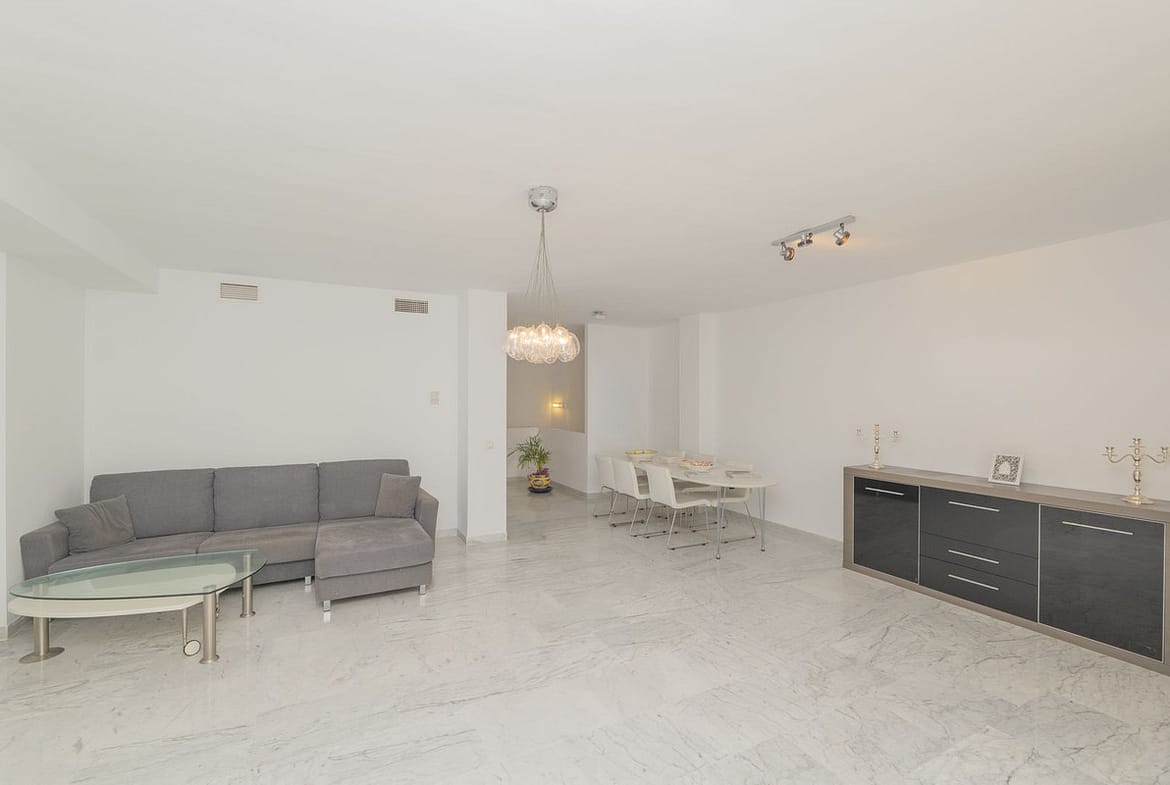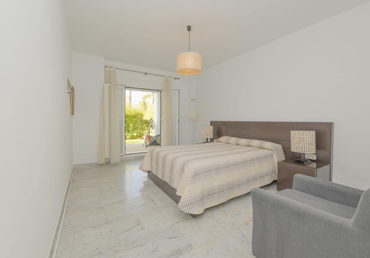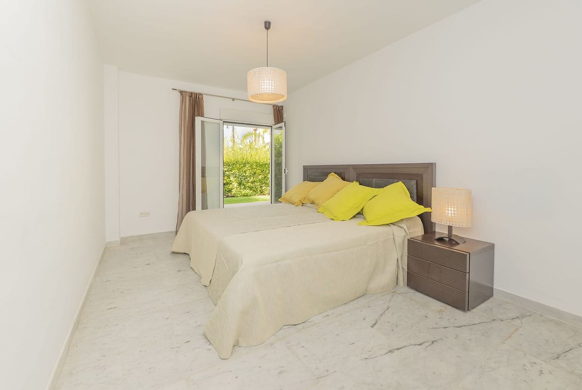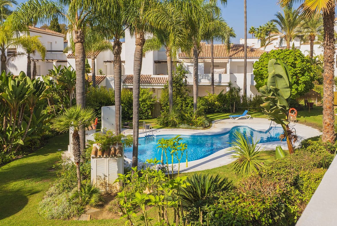 Come and meet the Paradise embodied in this charming Semi Detached House, epithome of a a Rest retreat, a quiet hideout, at a first line beach complex and despite that, tranquil, discreet and with 24/7 security … at a mere 4km from Marbella downtown and nestled in the renonwned Bahía de Marbella Macro Community. We are talking about a Andalusian Rustic Style complex, with abundance of properly taken care of green areas, witewashed houses, with winding paths that give the impression of having a walk in a traditional Andalusian “Pueblo Blanco”. This is a corner unit what increases its privacy and discretion. The dwelling display, determined by the land slide, is as follows: On the “acting” ground floor which happen to be the upper floor we enter to a huge living room, decorated in a minimalist approach what enhances the impression of the size, with a separate dining area and access to the 20sqm terrace, besides a fully fitted kitchen, separated laundry room with an ample storage wardrobe, and a complete bathroom. On the lower level, a distributor hall welcomes us leading to the two main bedrooms, both with access to the private 40sqm garden, and a complete bathroom; besides a third room that can be aimed as a living room or a third bedroom. The complex, apart of all the previous features boasts two different pool areas, social club for owners open in medium and high season, direct accesses to the white sandy beaches of Bahía de Marbella as well as the “Pasarela Litoral” a wonderful wooden promenade planned to connect the whole of the Costa del Sol along the beach. Using this promenade we will be able to go to Marbella Downtown without leaving the beach in a gorgeous walk path near the shore. The property is in perfect condition and ready to be used, either as a first home or a wise holiday home. Parking place included in the price.