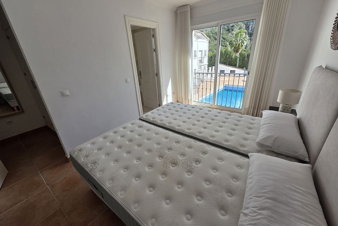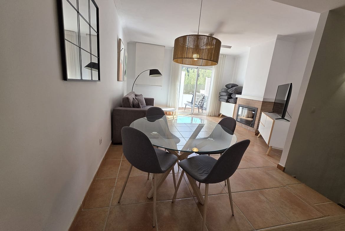 3-bedroom, 3-bathroom townhouse. There is also a guest toilet on the main floor. Underground parking. Access to the property is from the garage. On the main floor there is a guest toilet, a fully open-plan kitchen which has been renovated to a high standard. Living/dining room with fireplace and access to a small terrace. Access to the communal swimming pool. First floor: 2 spacious en-suite bedrooms. On the top floor there is a large bedroom with a dressing room and a full bathroom.