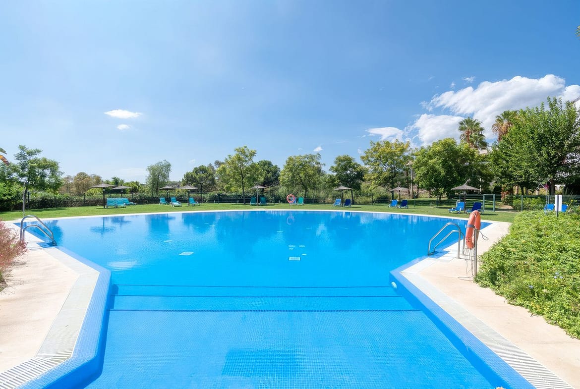 The home offers three spacious double bedrooms with fitted wardrobes. Two have en suite shower rooms, while a third full bathroom completes the layout. A private garden, created for low maintenance, surrounds the villa with the option to add a pool to enhance the outdoor lifestyle. Residents enjoy resort-style amenities including an indoor heated pool, five outdoor pools, a chiringuito with BBQ, tennis, paddle and squash courts, a gym, Jacuzzi and immaculate communal gardens.