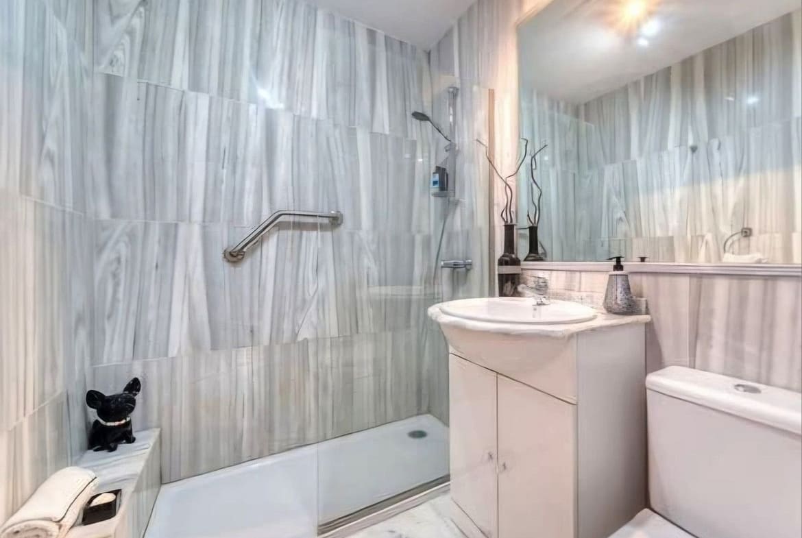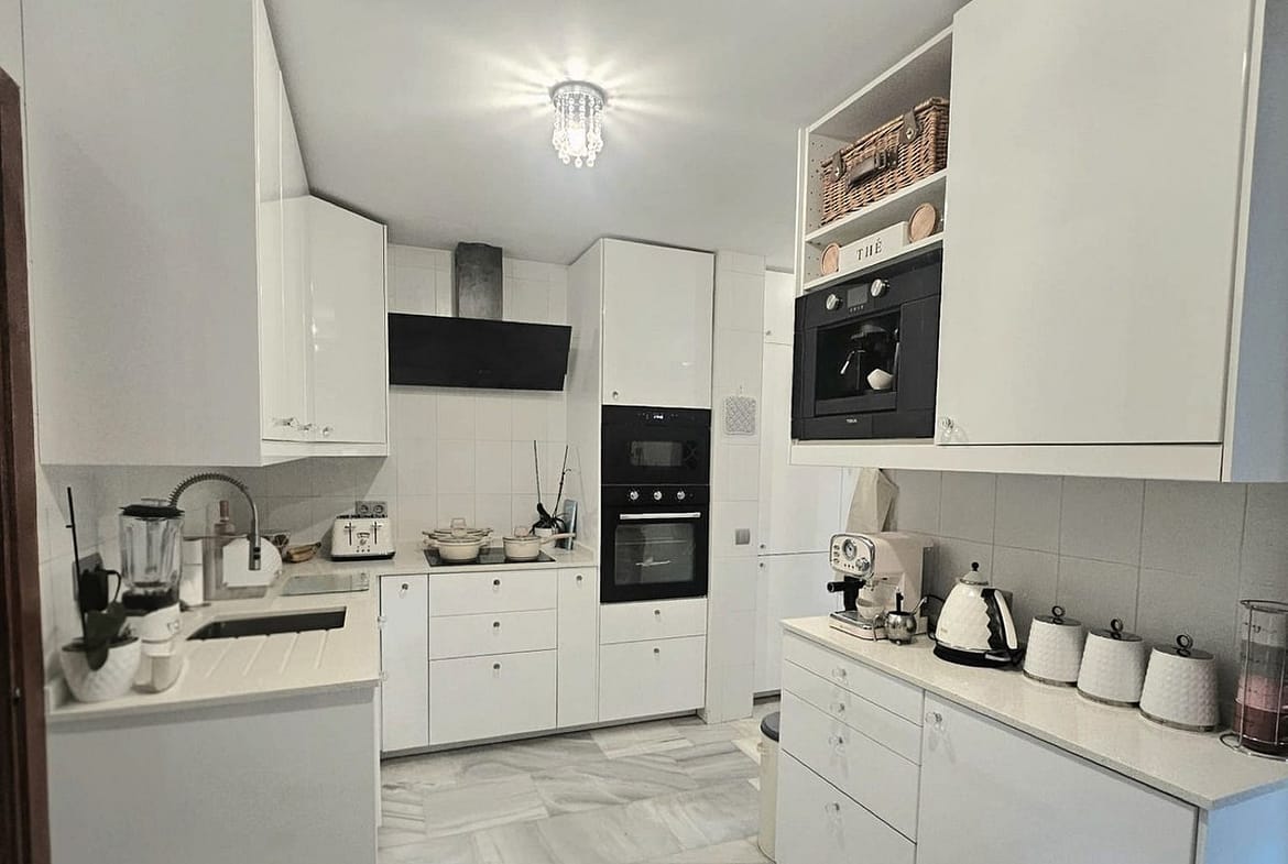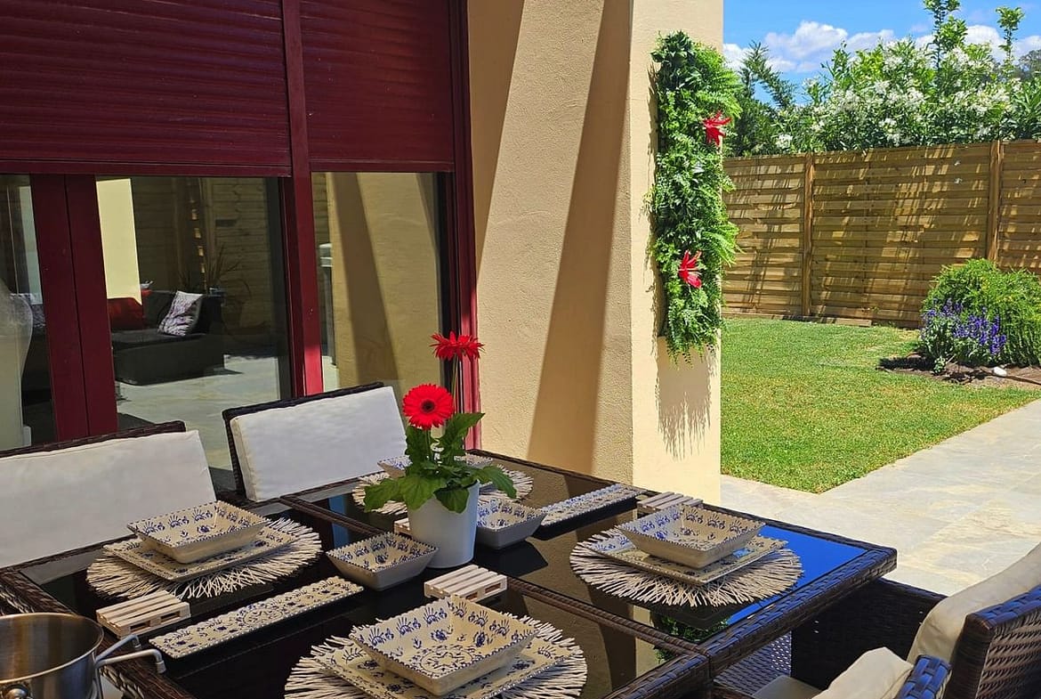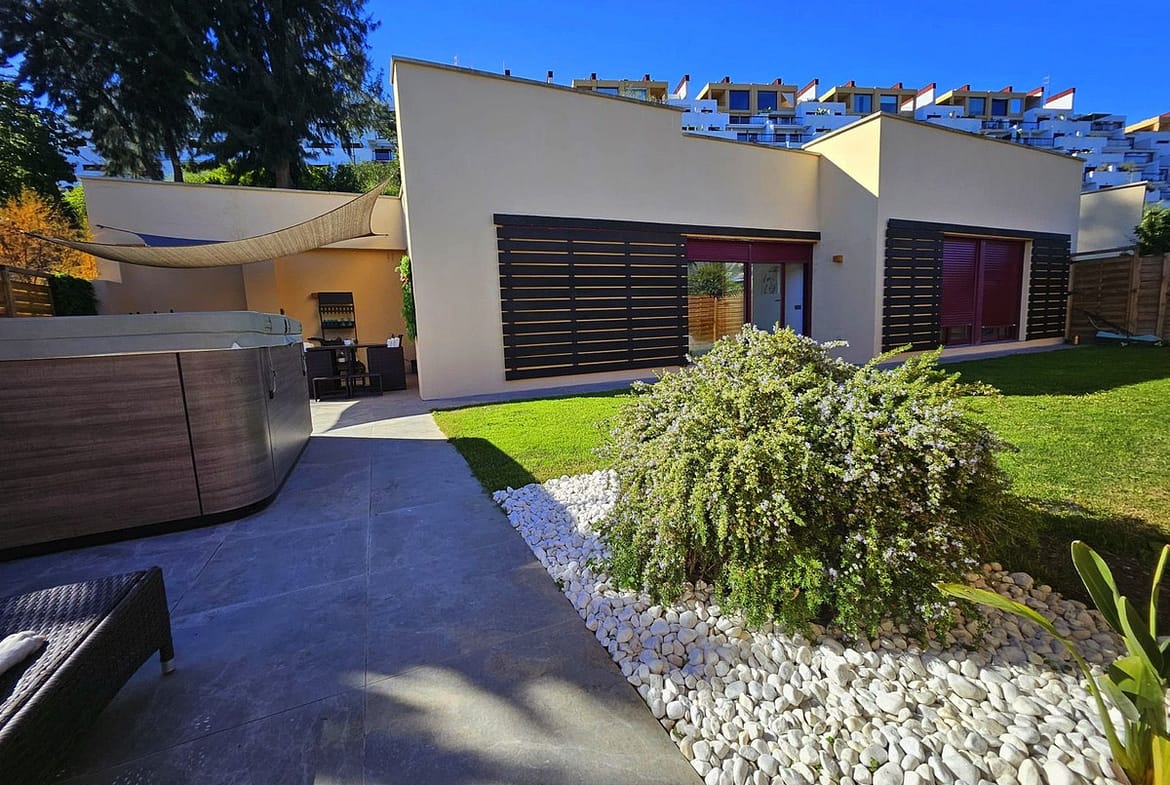 Impeccably maintained, this villa features three bedrooms (two with en-suite bathrooms), three bathrooms (two en-suite), an inviting entrance hall, an open-plan living-dining room, and a brand-new fully equipped kitchen with integrated oven, microwave, coffee maker, fridge-freezer, dishwasher, and quartz worktops. Luxurious marble flooring extends throughout, while the expansive outdoor terrace – recently renovated – includes a 5-person jacuzzi for ultimate relaxation. The fully fenced landscaped garden boasts automatic irrigation, ensuring low-maintenance beauty.