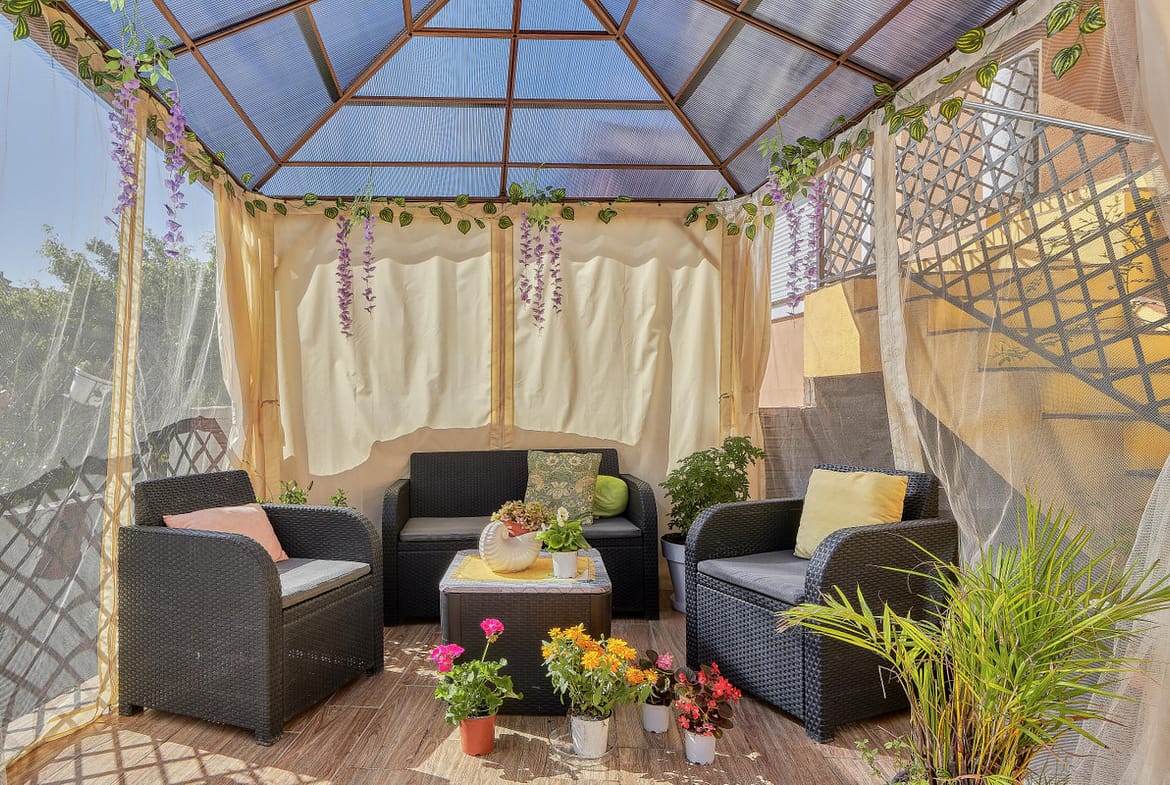 ???? 75 m2 of private outdoor space between porch and garden, ideal for enjoying the Mediterranean climate all year round
