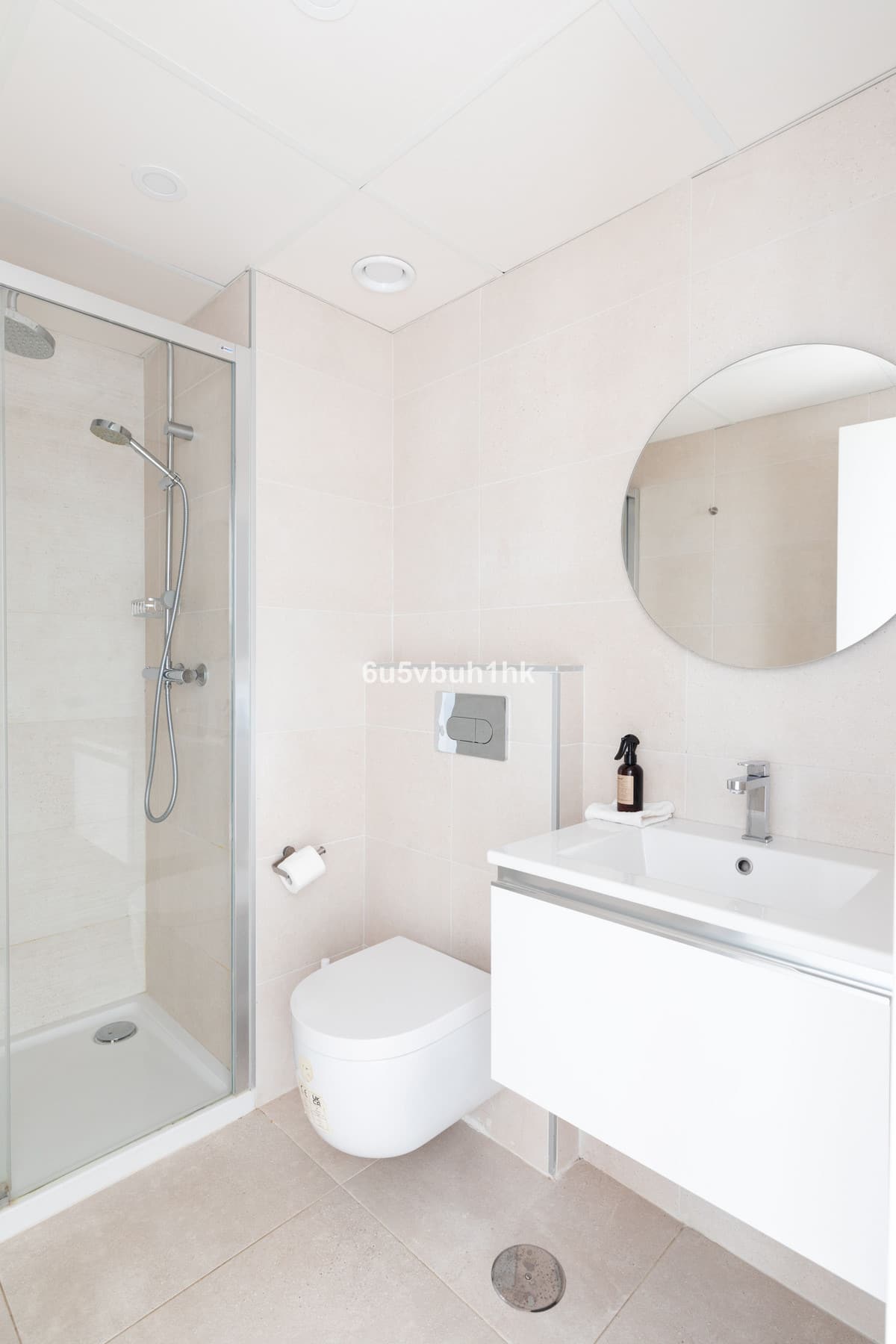 Upstairs, there are two bedrooms: one with a bathroom in the hallway and the other with an en-suite bathroom and private balconies on both sides. On the top floor, a stunning rooftop terrace awaits, offering sea views and endless possibilities for design and enjoyment.